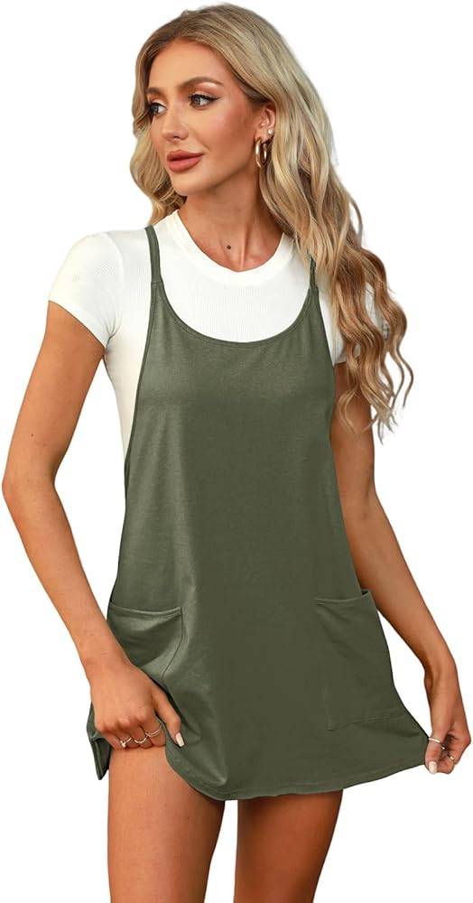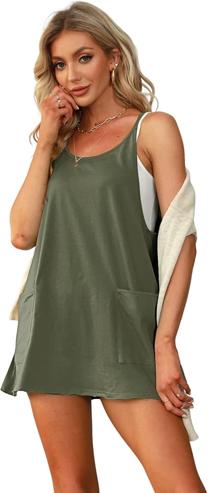 • المزايا: فستان قصير بدون أكمام، صورة ظلية بدون شكل، طول قصير، تصنيع ناعم، تصميم خفيف الوزن، خط عنق واسع، أشرطة كتف رفيعة، تفاصيل ظهر متسابق مع جيب بسحاب، جيوب كبيرة الحجم في الأمام.