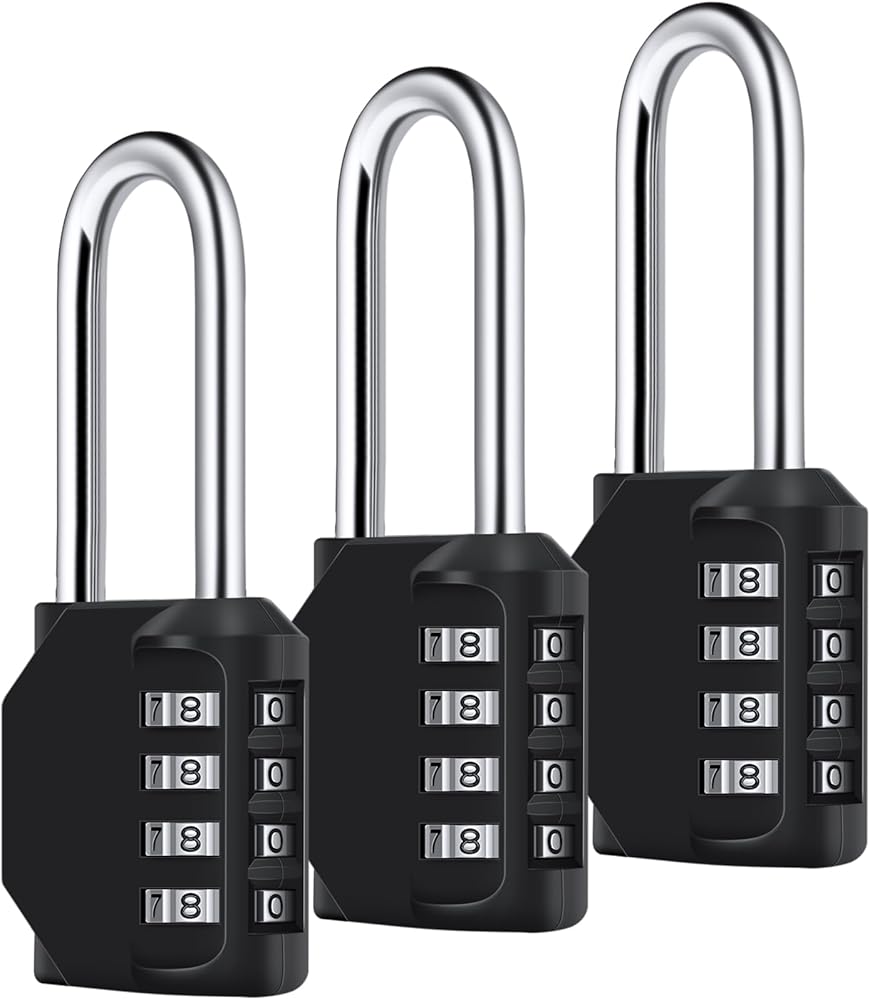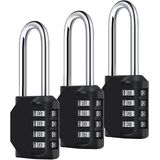 Diyife 2.6in Long Combination Padlock, 3 Pack Waterproof 4-Digit Combination Lock, Weatherproof Metal & Galvanized Steel, High Security for Schools, Gyms and Lockers - Black