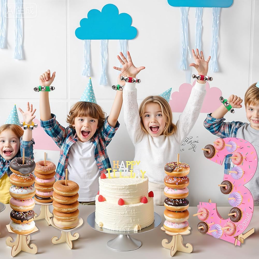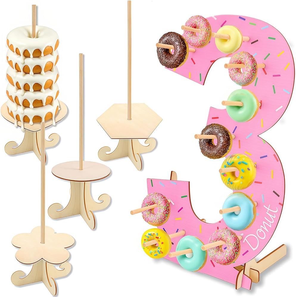 مجموعة من 5 قطع من حامل الدونات، حامل عرض جداري على شكل دونات خشبي مع 4 قطع حامل برج الدونات، حامل لوح الدونات لطاولة الحلوى وحفلات الزفاف وأعياد الميلاد وحفلات استقبال المولود الجديد (رقم 3)