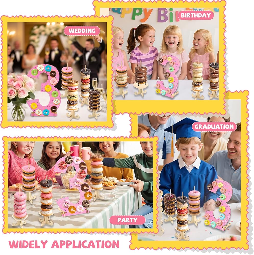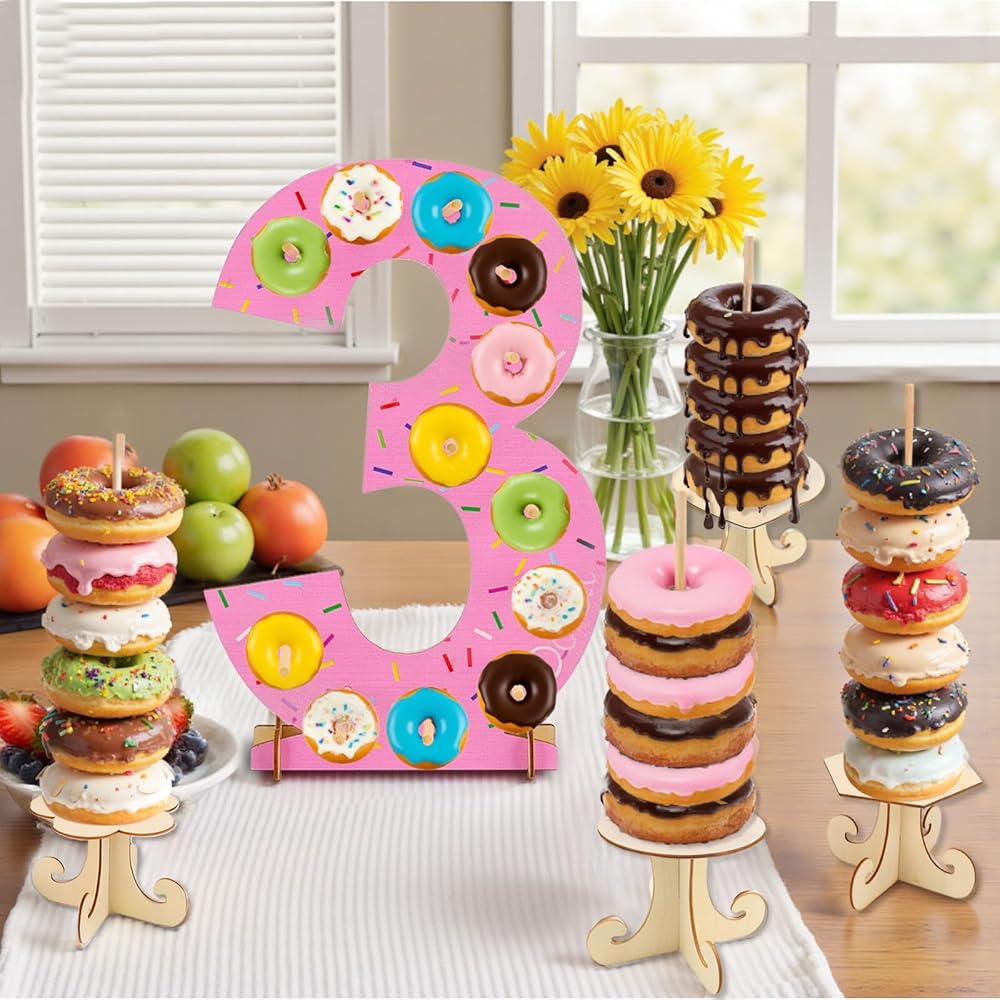 • 【Unique Design】The donut holder is uniquely presented in the shape of the number "3", it can hold a lot of donuts without losing its beauty. No matter where you put it, it will surprise you and your guests, showing your delicious food in a unique way.