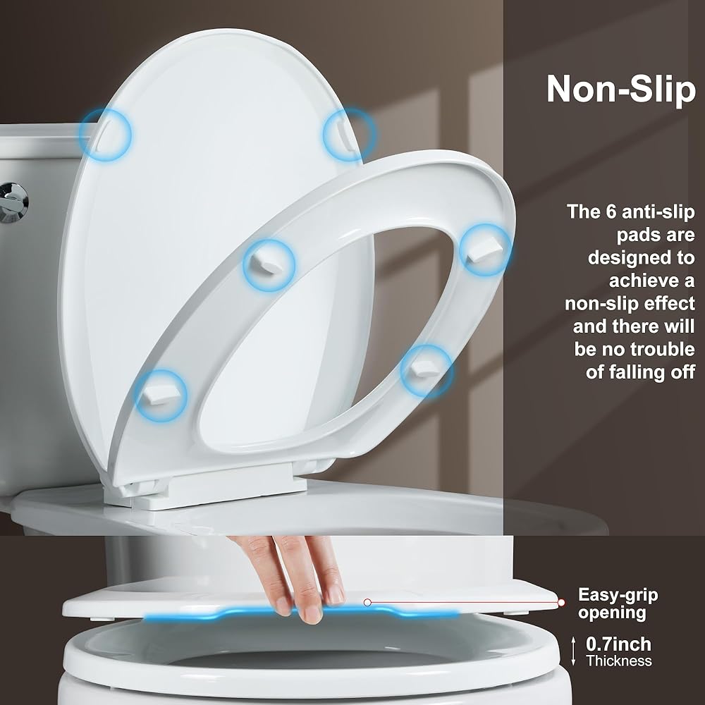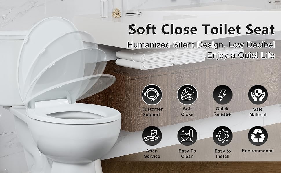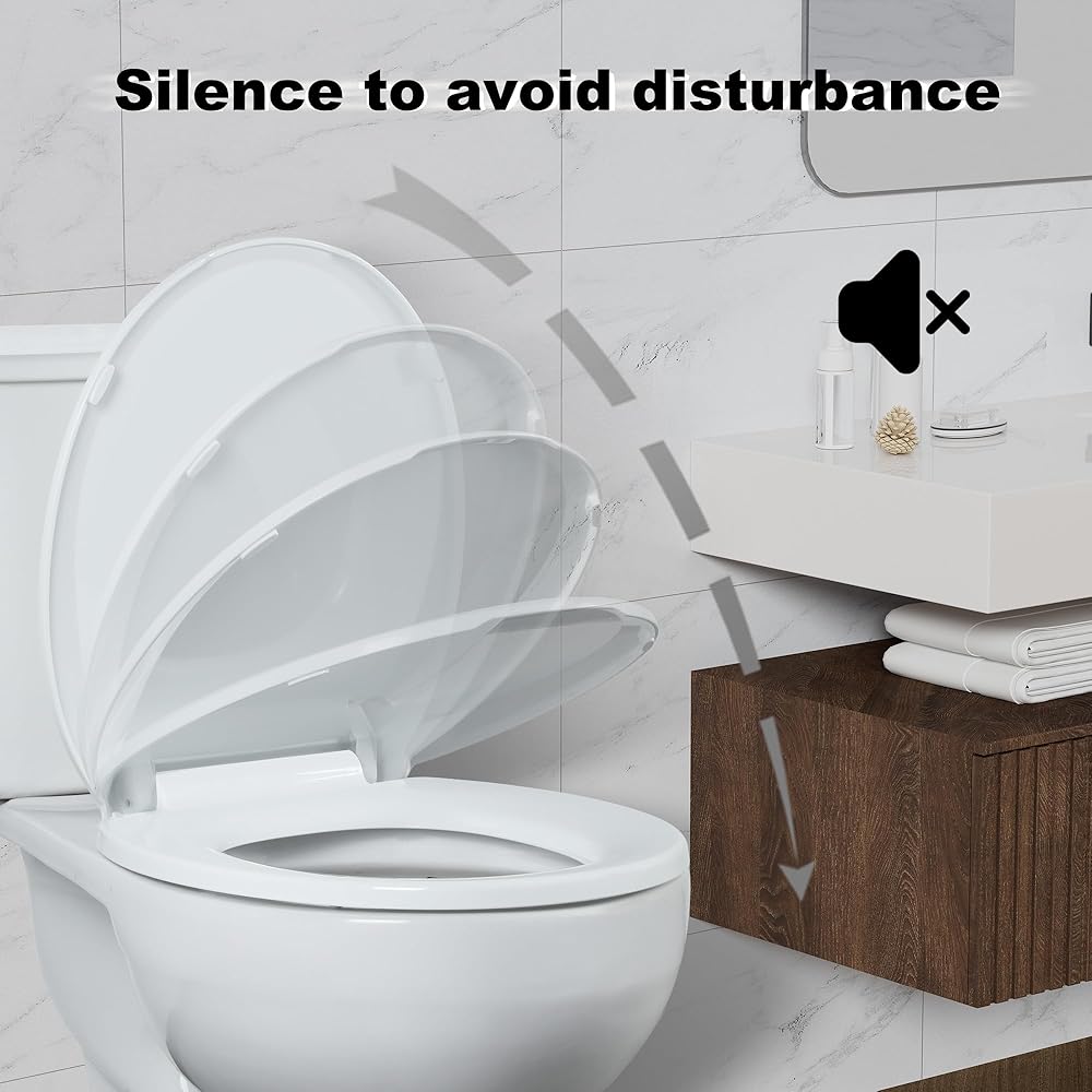 • سلامة غلق بطيئة وهادئة: مقعد المرحاض الناعم يغلق ببطء وبهدوء. مفصلات مقعد المرحاض ذات الإغلاق البطيء تحمي أيدي الأطفال. لا مزيد من الضربات الصاخبة!