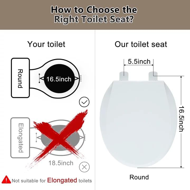 • يناسب معظم المراحيض المستديرة: مقعد المرحاض الأبيض هذا مصنوع لأوعية مقاعد المرحاض المستديرة مثل Kohler وToto وAmerican Standard وغيرها. يوفر شكل مقعد المرحاض القياسي الراحة والملاءمة المثالية.