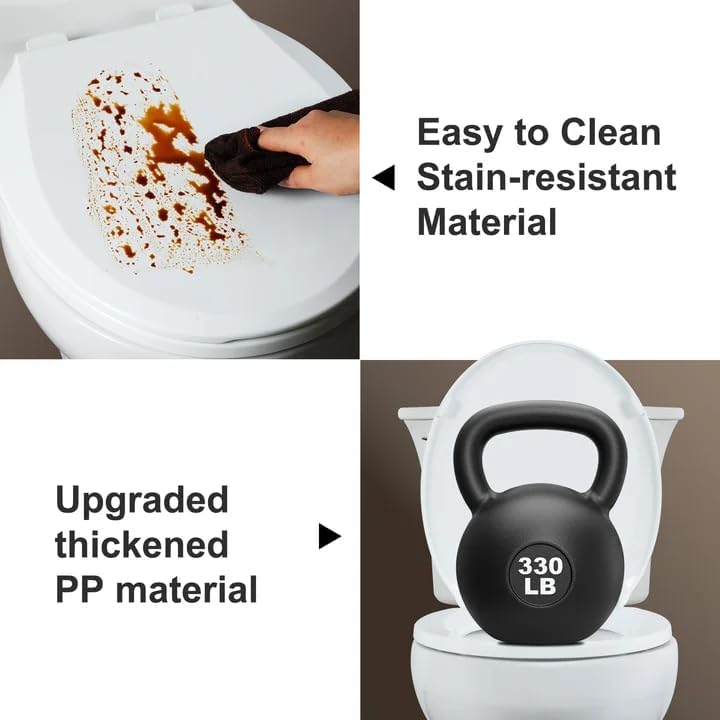 • مقاوم للبقع: تم تصميمه من بلاستيك البولي بروبيلين السميك والمتين، ويتحمل مقعد المرحاض عالي التحمل هذا الاستخدام اليومي دون أن يبهت أو يتشقق أو يتشوه.