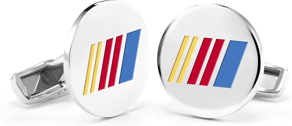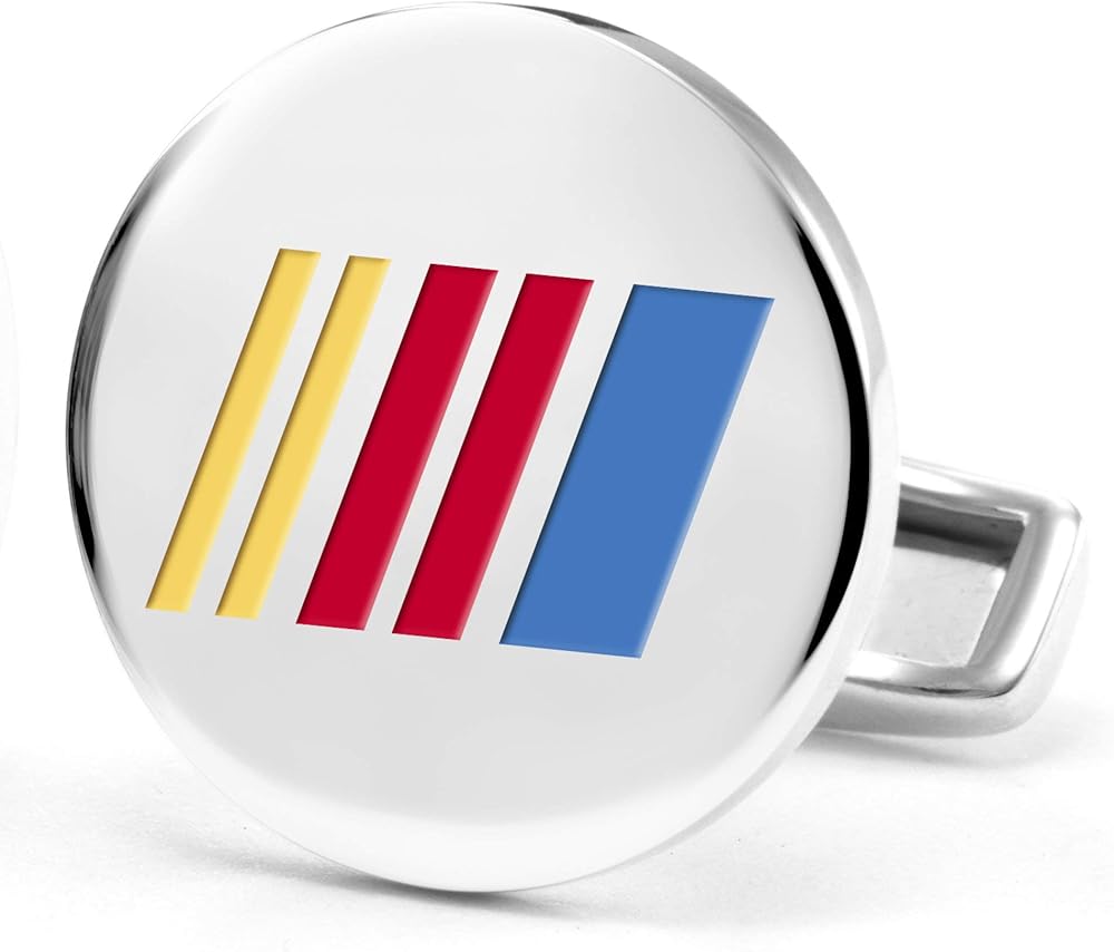 Our NASCAR sterling silver cufflinks feature the 3 color NASCAR icon logo in impressive detail. Bring some NASCAR spirit to your more formal occassions! Officially licensed by NASCAR Disc measures .8" diameter Finest grade .925 sterling silver High-polish, rich luster finish Attractive M.LaHart signature jewelry pouch and gift box.