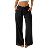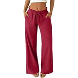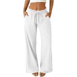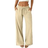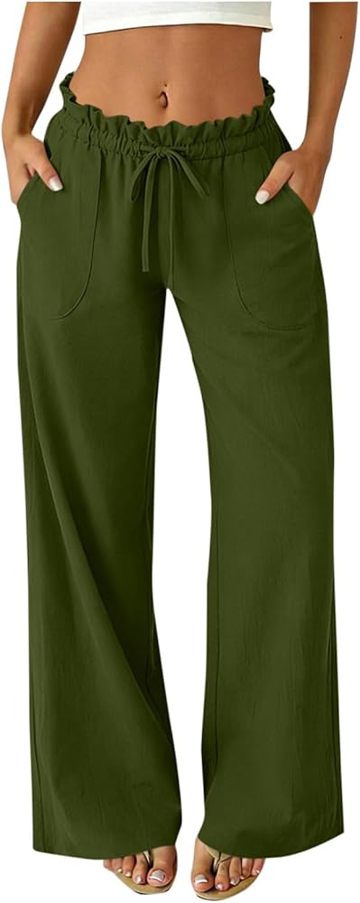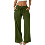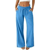 سراويل كاجوال واسعة الساق للنساء بخصر مكشكش ورباط للصيف، سراويل بالازو لقضاء العطلات على الشاطئ مع جيوب in Kuwait