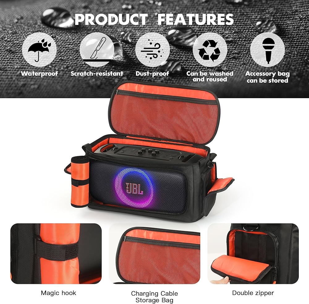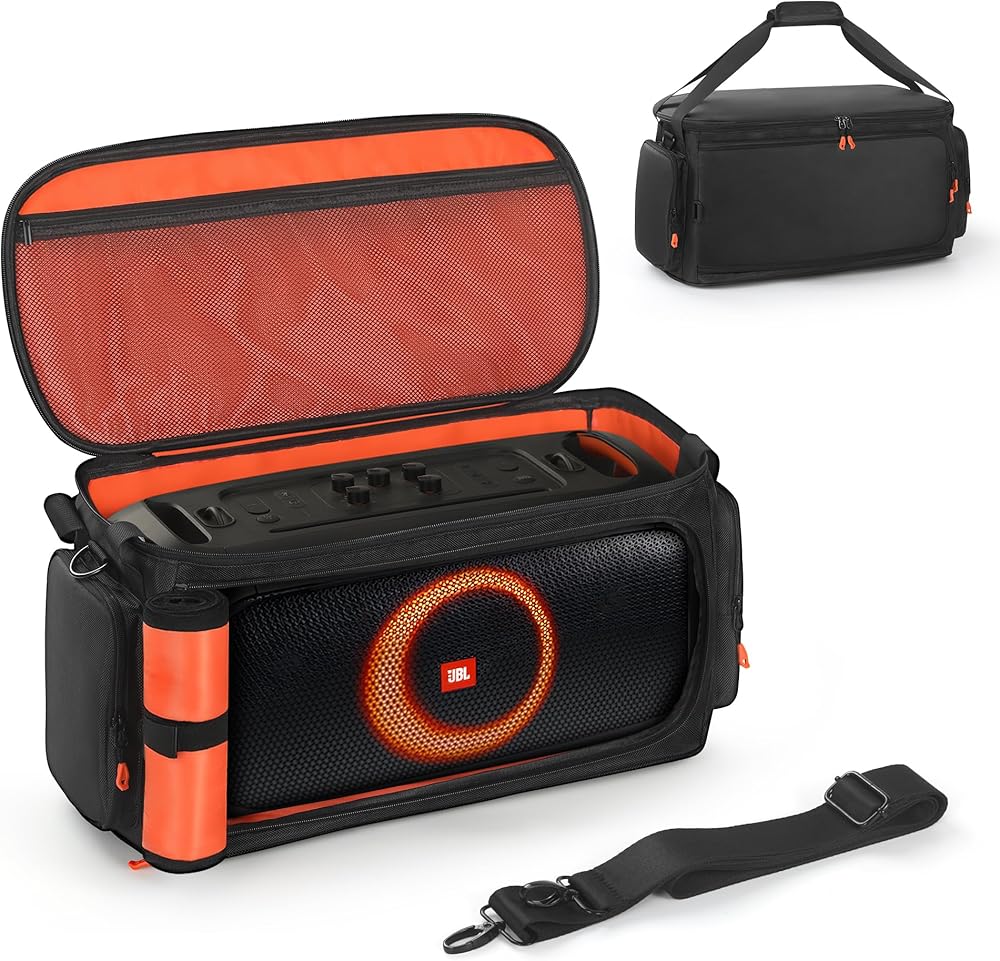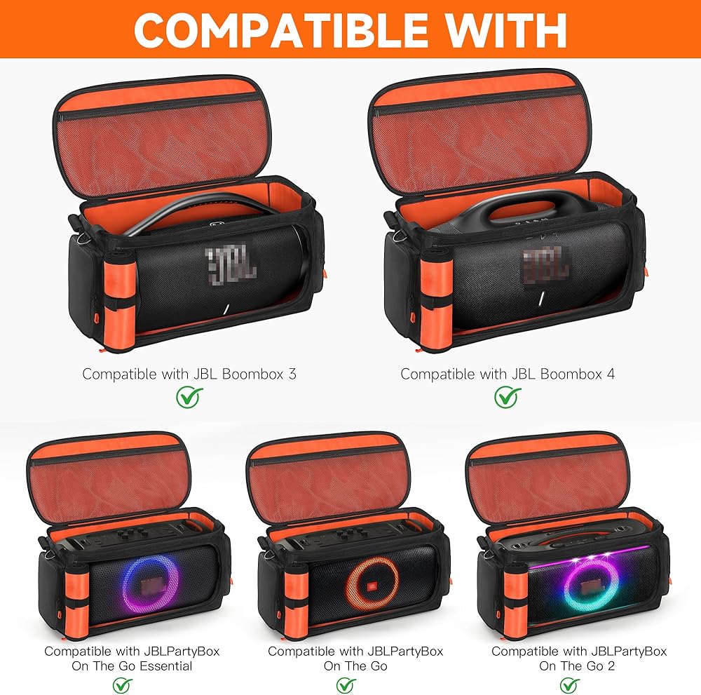 حقيبة حمل متوافقة مع JBL PartyBox On The Go Essential/On The Go/On The Go 2، حقيبة سفر محمولة متوافقة مع JBL Boombox 3/4، مع حزام كتف قابل للتعديل وتصميم متعدد الجيوب للميكروفون