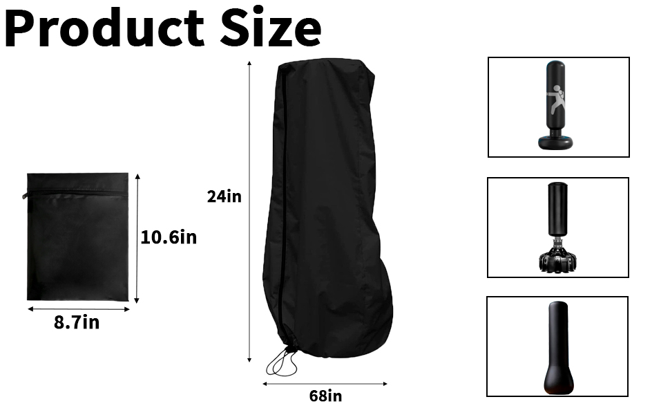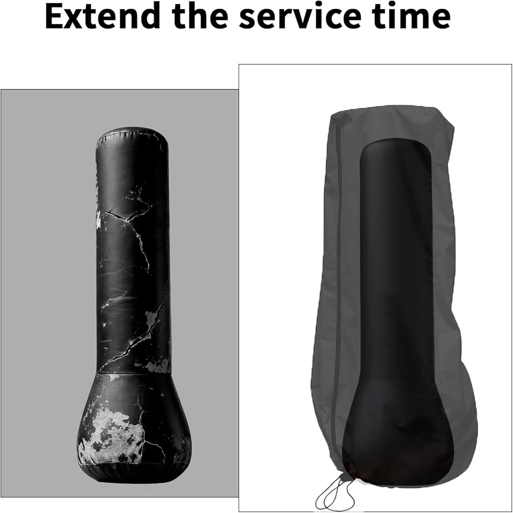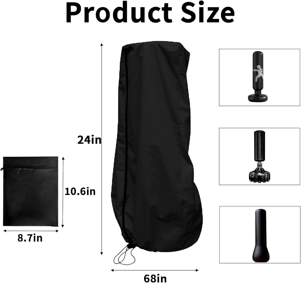 غطاء كيس ملاكمة قائم بذاته مقاوم للماء في الهواء الطلق، واقي كامل أكسفورد 420D مع حقيبة تخزين لحقيبة الملاكمة الدائمة، 24 بوصة عرض × 68 بوصة ارتفاع غطاء كيس ملاكمة مناسب لجميع الأحوال الجوية والغبار والشمس والمطر