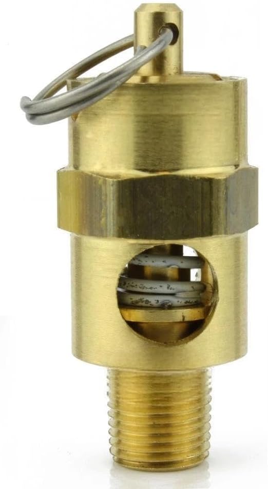 صمام تخفيف ضغط أمان ضاغط الهواء 250-1/8-150 - لاستبدال أجزاء ضاغط الهواء Conrader - صمام إيقاف الخزان - 1/8 بوصة ذكر NPT ملولب 150 PSI 132 SCFM صمام L: 1-3/4 بوصة نحاس صلب ذهبي