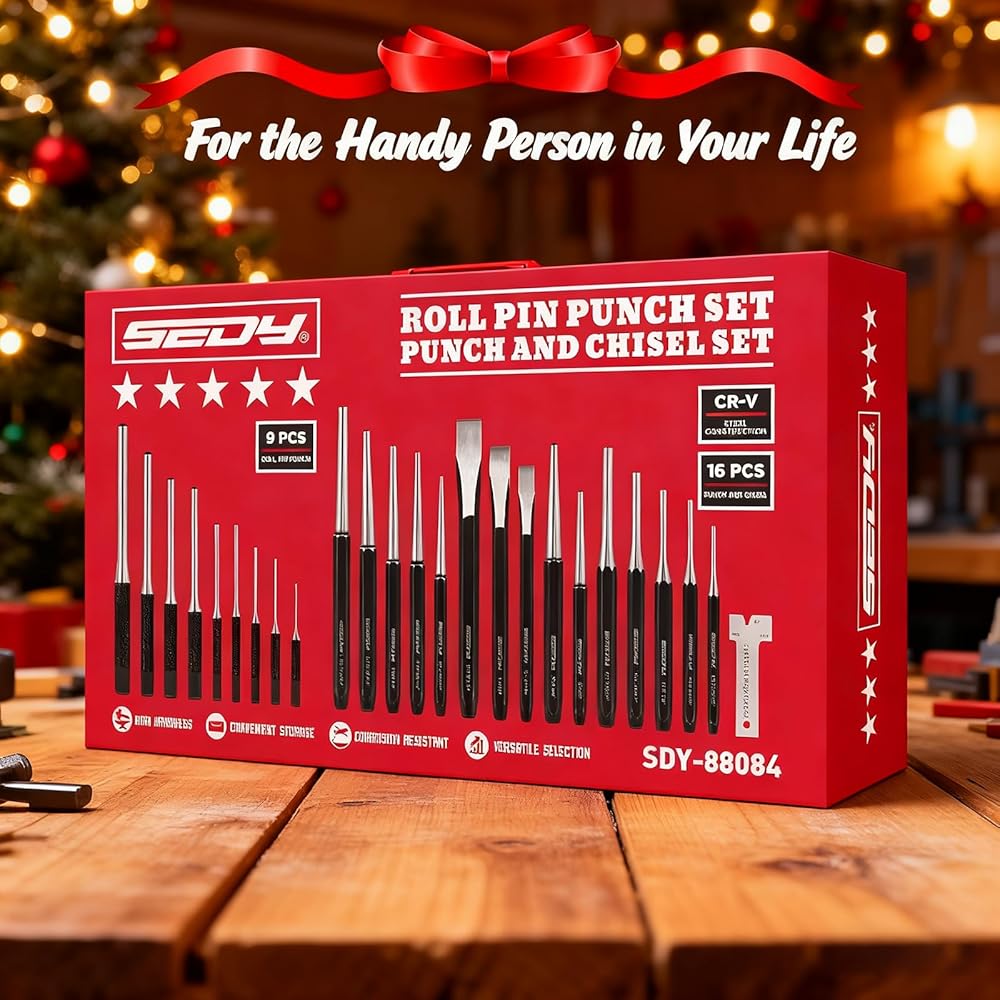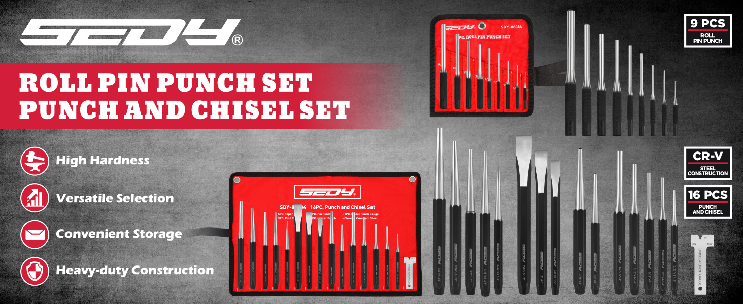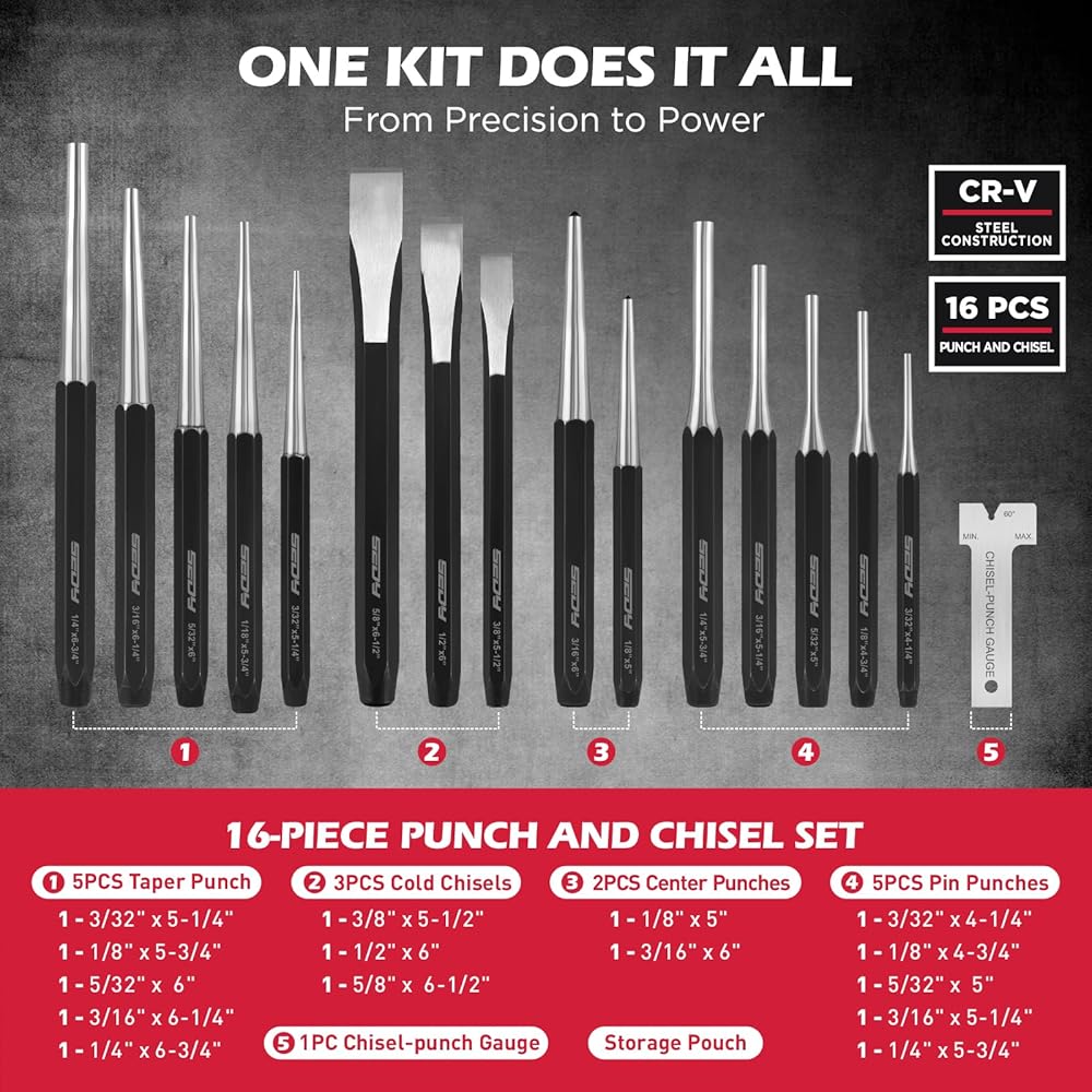 تغطية كاملة - تجمع هذه المجموعة المكونة من 25 قطعة بين مجموعة 9 قطع من الدبابيس الدوارة ومجموعة 16 قطعة من الثقب والإزميل، مما يوفر أزاميل مدببة ودبابيس ومركزية وباردة للأعمال الخشبية والأعمال المعدنية والسيارات والإصلاحات اليدوية.