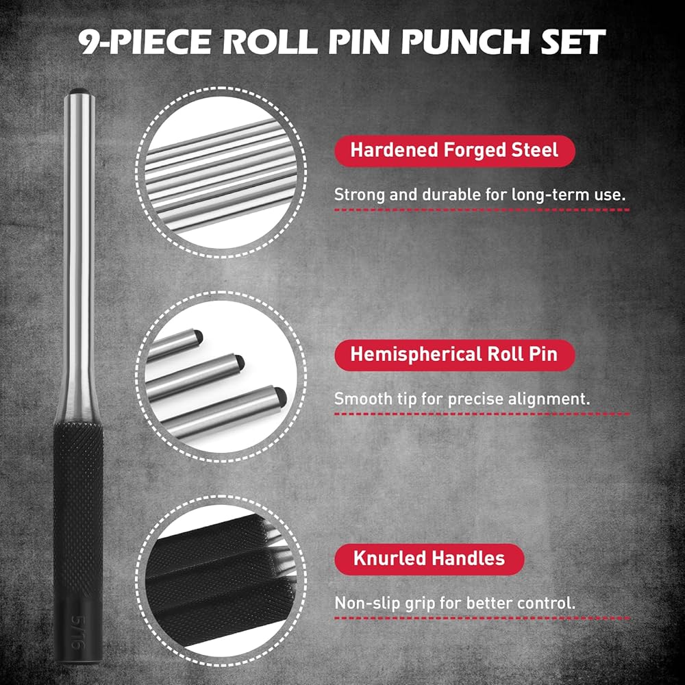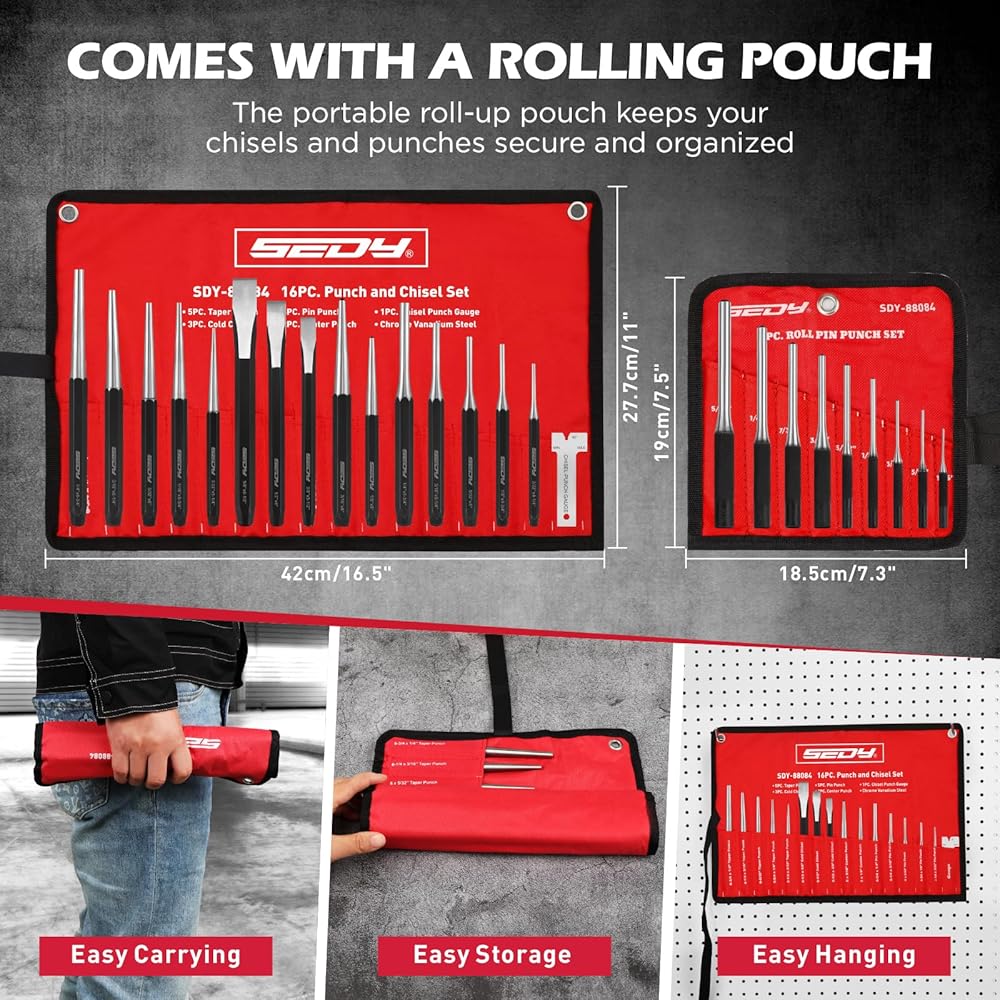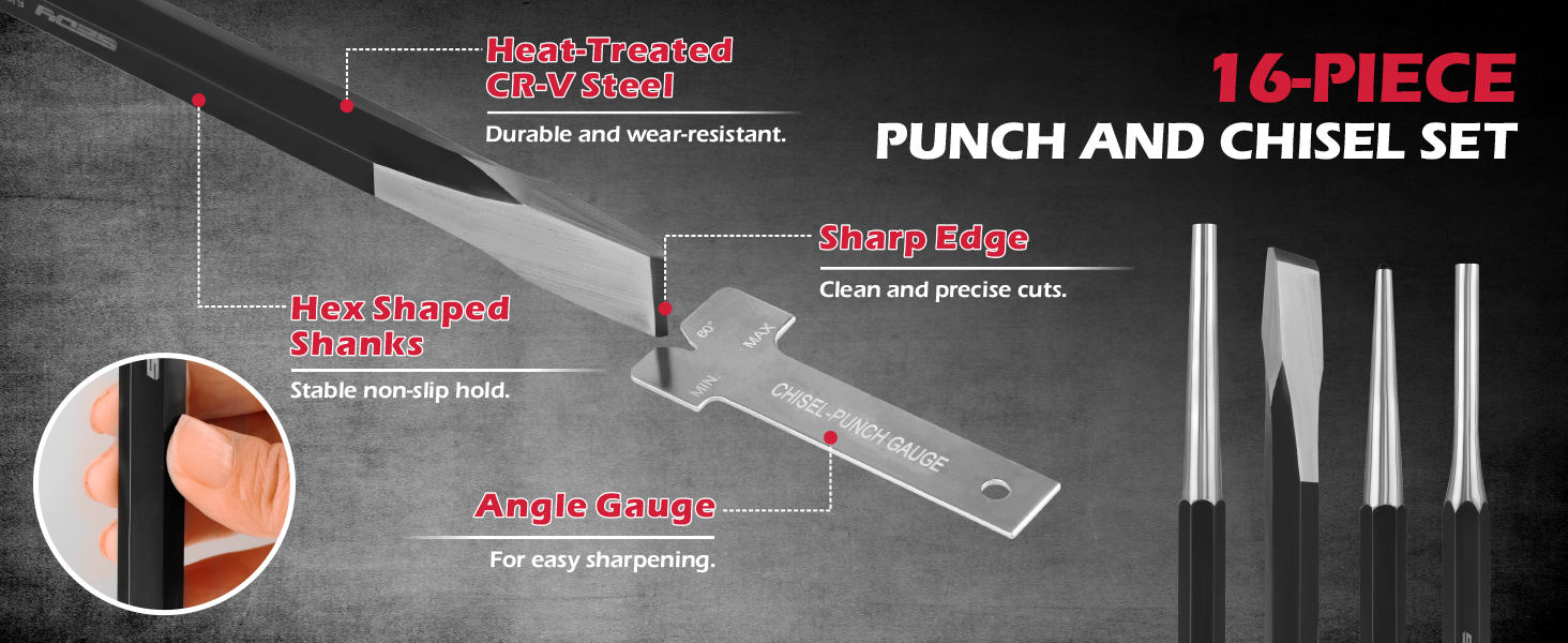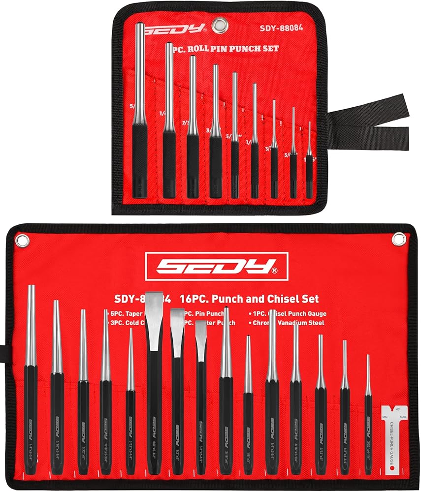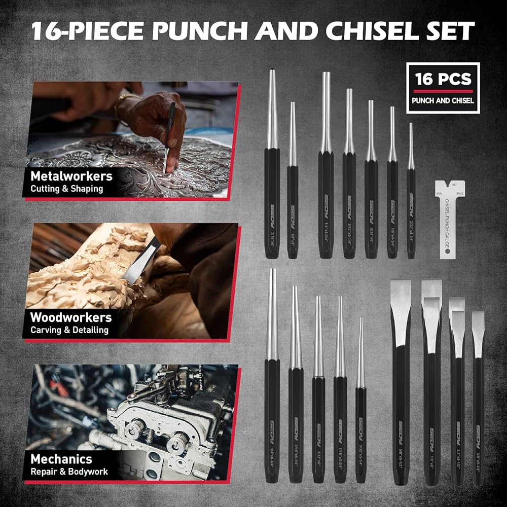أداء عملي - مصممة للتحكم والراحة تحت تأثير المطرقة، توفر مجموعة اللكمات والإزميل الفولاذية هذه نقلًا فعالاً للقوة للحصول على نتائج دقيقة واحترافية في أعمال إصلاح السيارات والمجوهرات والمعادن.