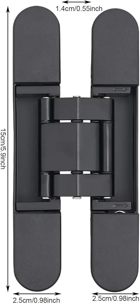 6 بوصة باب أسود مخفي بمفصلات من سبائك الزنك تفتح 180 درجة 21.55 مم 2 قطعة