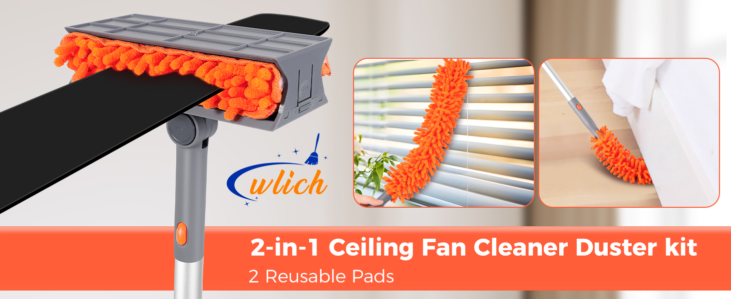 أقمشة قابلة لإعادة الاستخدام وقابلة للغسل - قماش غبار المروحة مصنوع من مادة الشانيل، مصمم للاستخدام والغسيل المتكرر. ينظف دون إتلاف المراوح أو الأسقف، وهو مناسب لتنظيف شفرات المروحة والأسقف وألواح القاعدة والأسطح الخشبية والأبواب والجدران والمزيد.