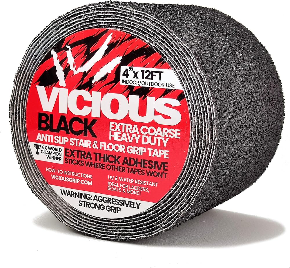 لفة واحدة مقاس 10.16 سم × 30.48 سم: قبضة شديدة التحمل في لفة واحدة. بعرض 4 بوصات وطول 12 قدمًا. للحصول على أفضل النتائج، نظف السطح قبل وضع شريط Vicious Griptape.