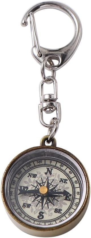 Gold Vintage Zinc Alloy Metal Compass with Chain, Key Ring Camping Compass Keychain Navigation Tools Key Ring,Compasses Electronics and Gadgets Recreation Accessories