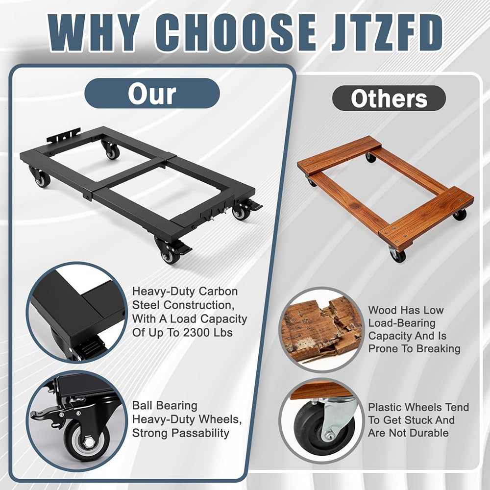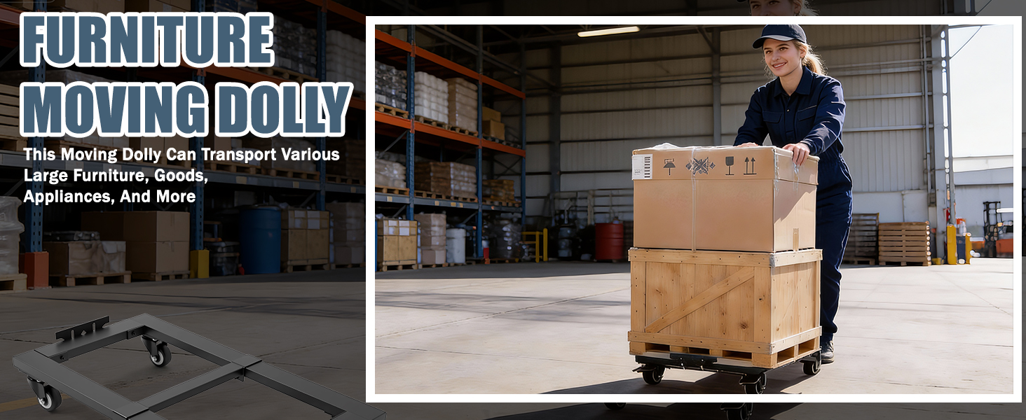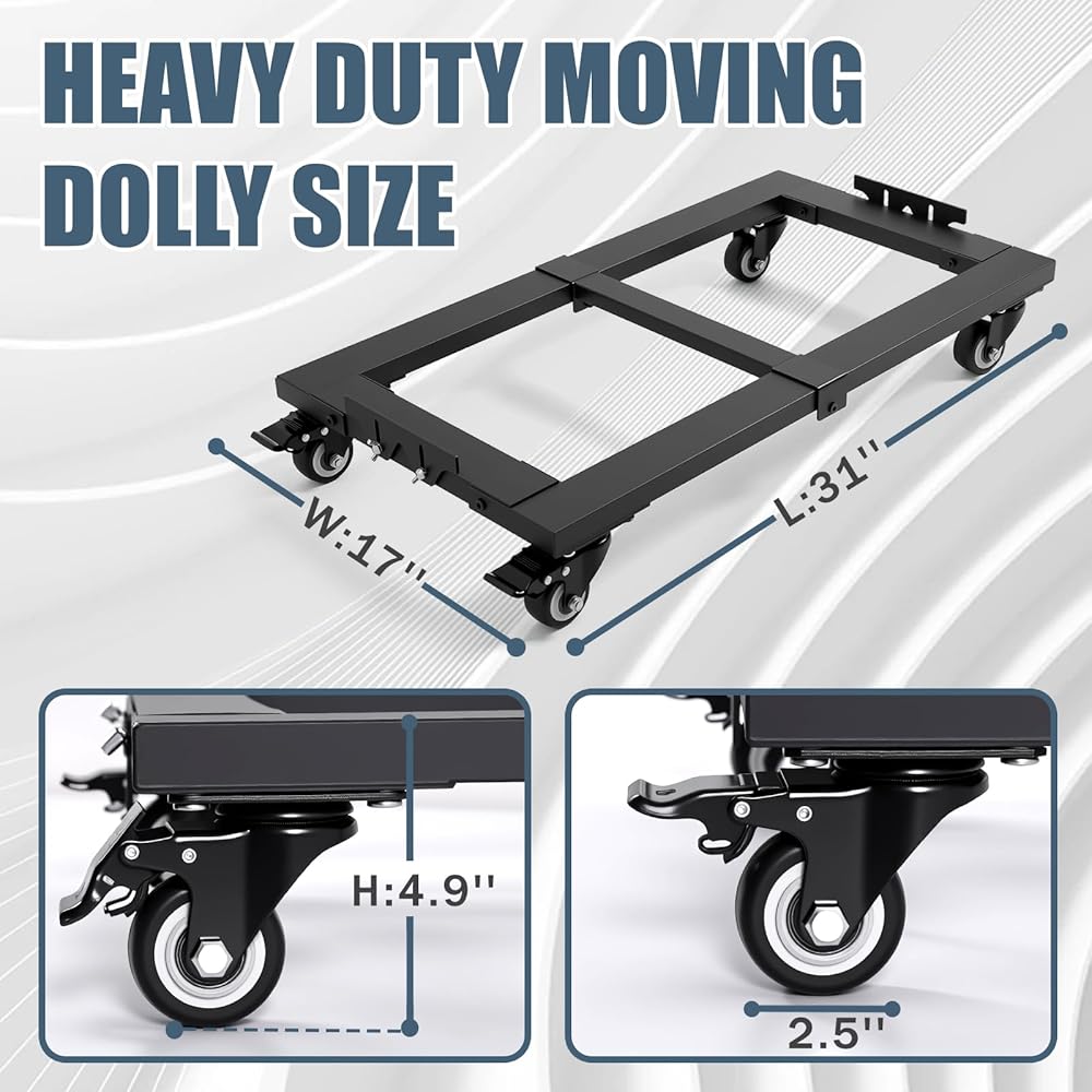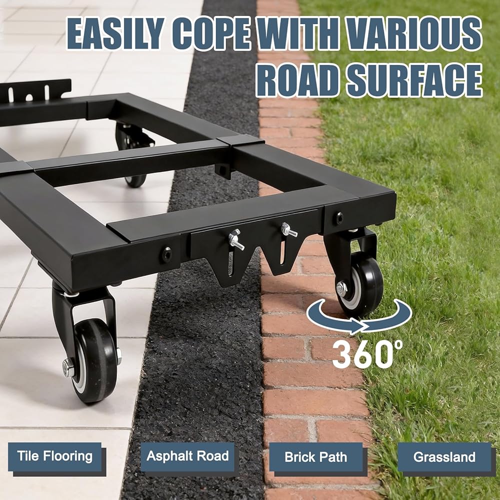 دوللي للأثاث الفاخر: مصنوعة من الفولاذ الكربوني عالي التحمل بسعة 2300 رطل، وهي تنقل الأثاث الكبير والمعدات المتنوعة. يتميز بلمسة نهائية متينة مطلية بمسحوق أسود لمقاومة الطقس