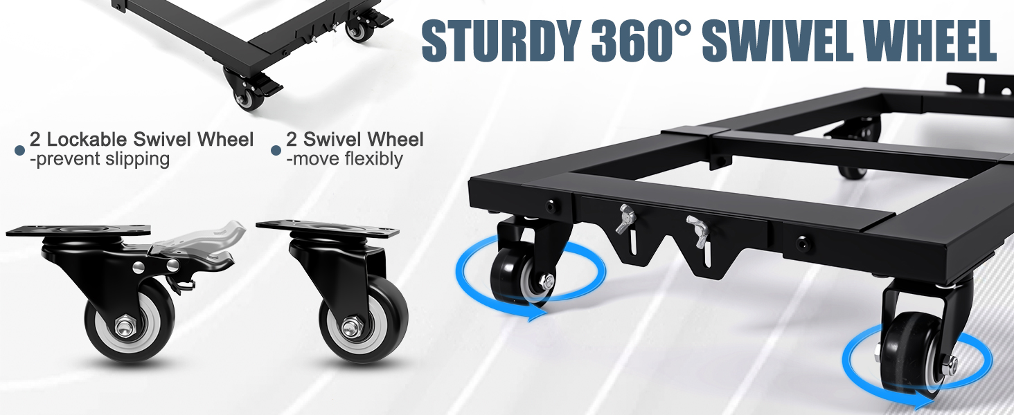 4 عجلات دوارة شديدة التحمل: تتميز العجلة بعجلتين قابلتين للقفل من أجل دوران مرن ومواقف آمنة في أي مكان. تتعامل العجلات كبيرة الحجم بسهولة مع الحصى والأسفلت ومسارات الطوب والعتبات والأسطح غير المستوية
