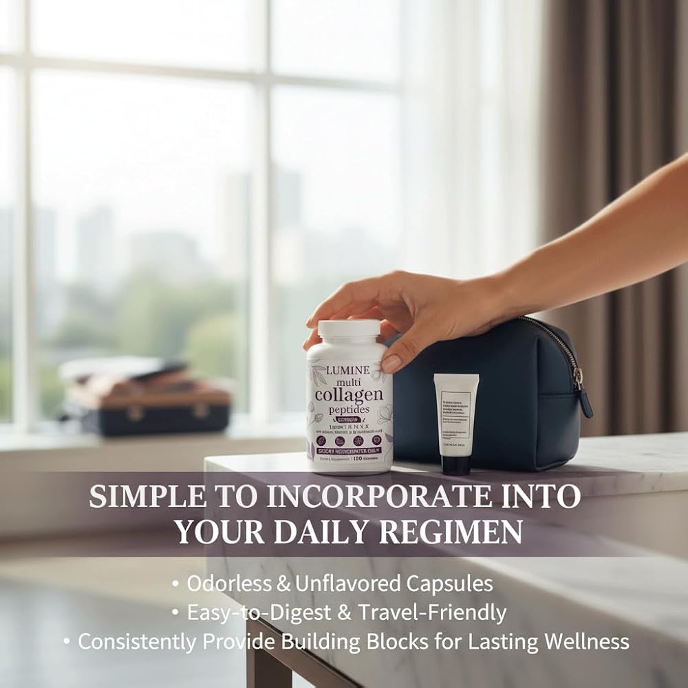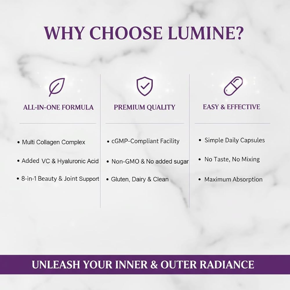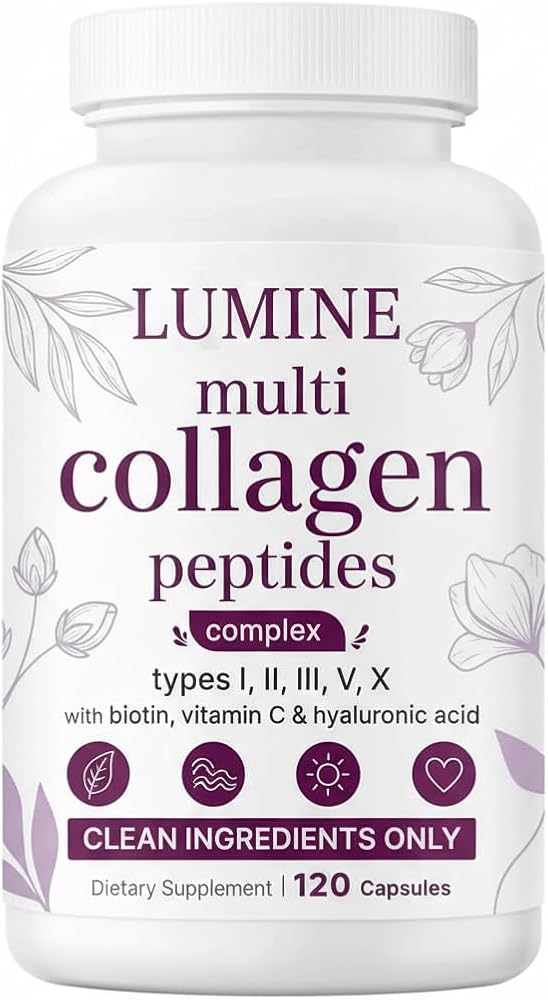 Lumine Multi Collagen Complex Capsules – Hydrolyzed Protein Peptides Types I, II, III, V & X for Hair, Skin, Nails & Joint Support – Non-GMO, Gluten-Free & Easy to Swallow (120 Capsules)