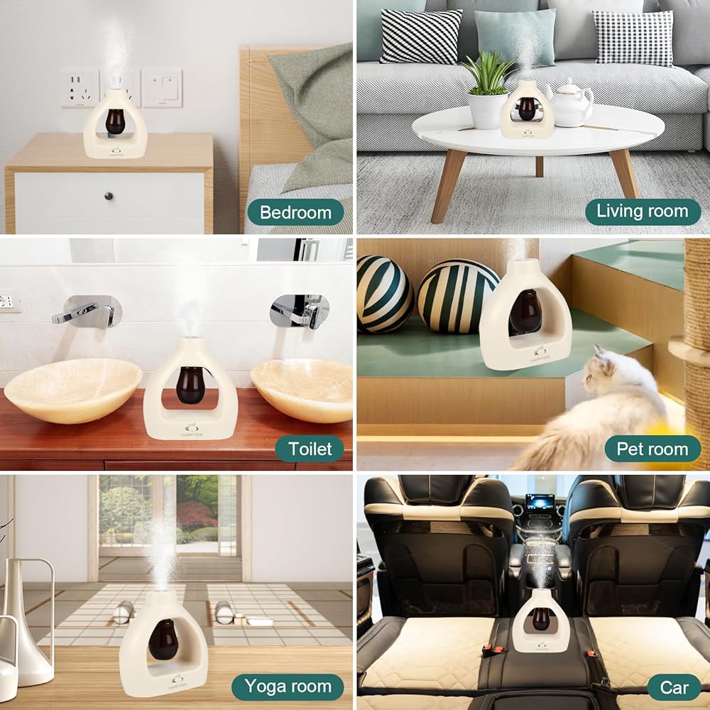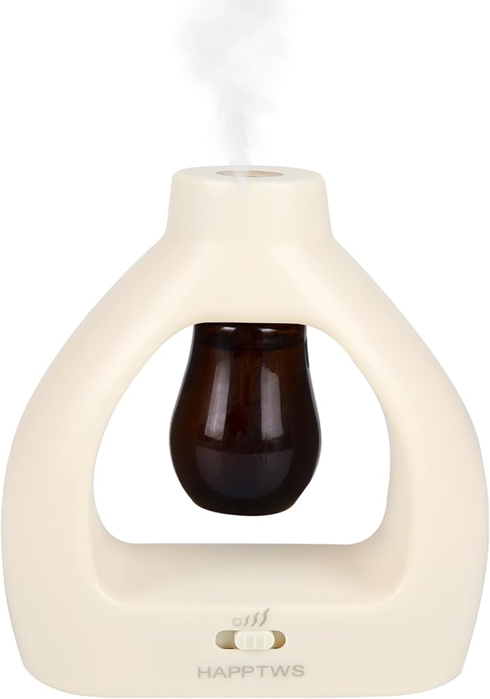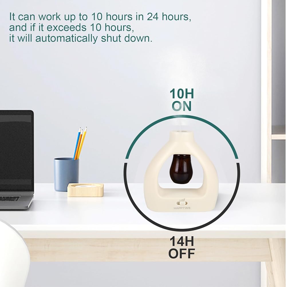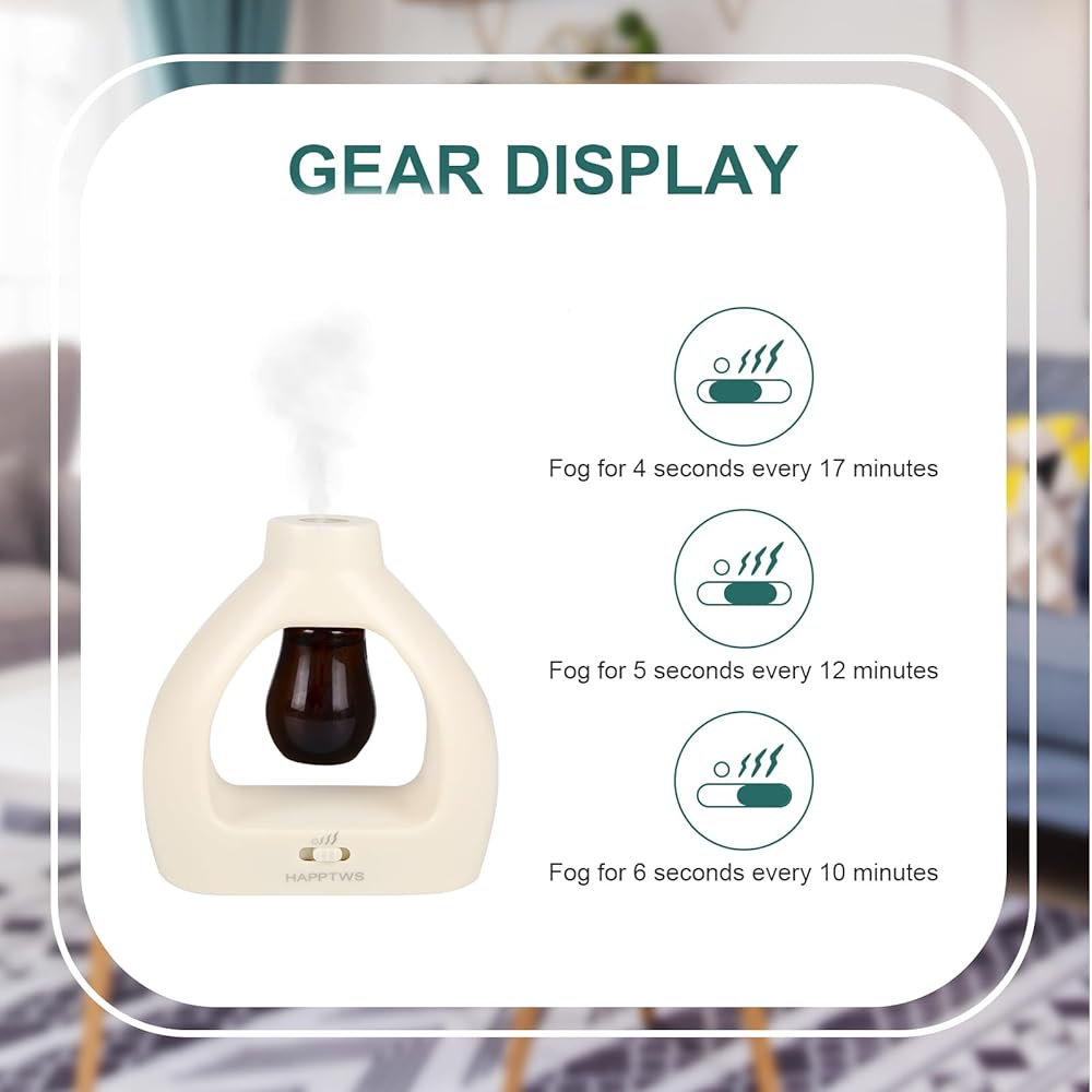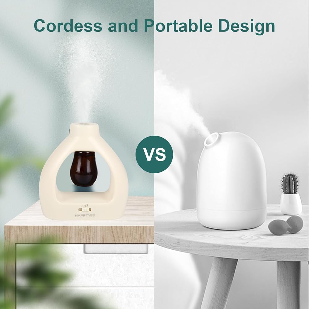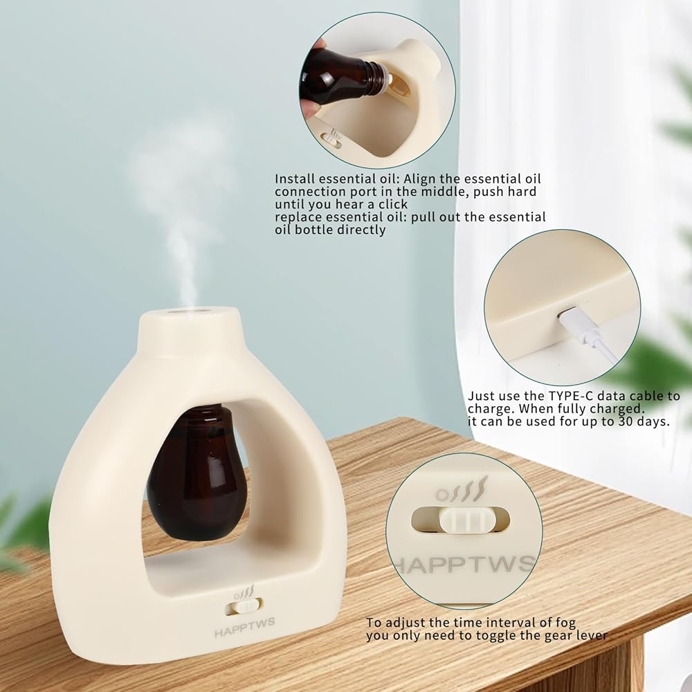 HAPPTWS Waterless Essentil Oil Diffuser Set - Cordless Diffuser 3 Timer Settings Battery Operated for Bedroom Yoga Studio Bathroom Pet Room-Milky White