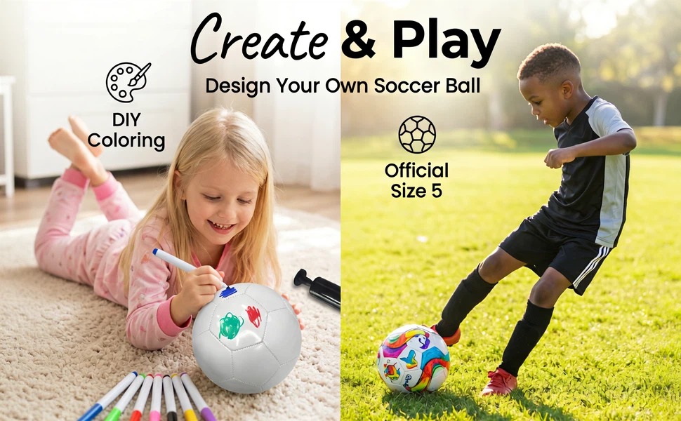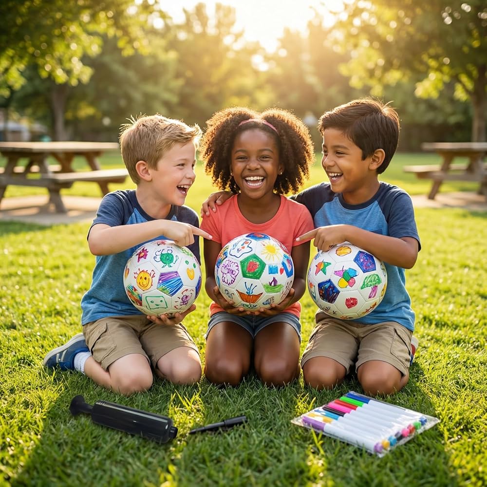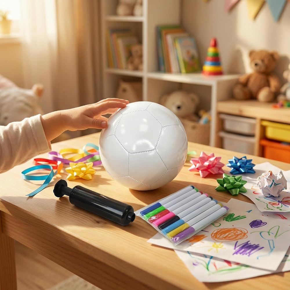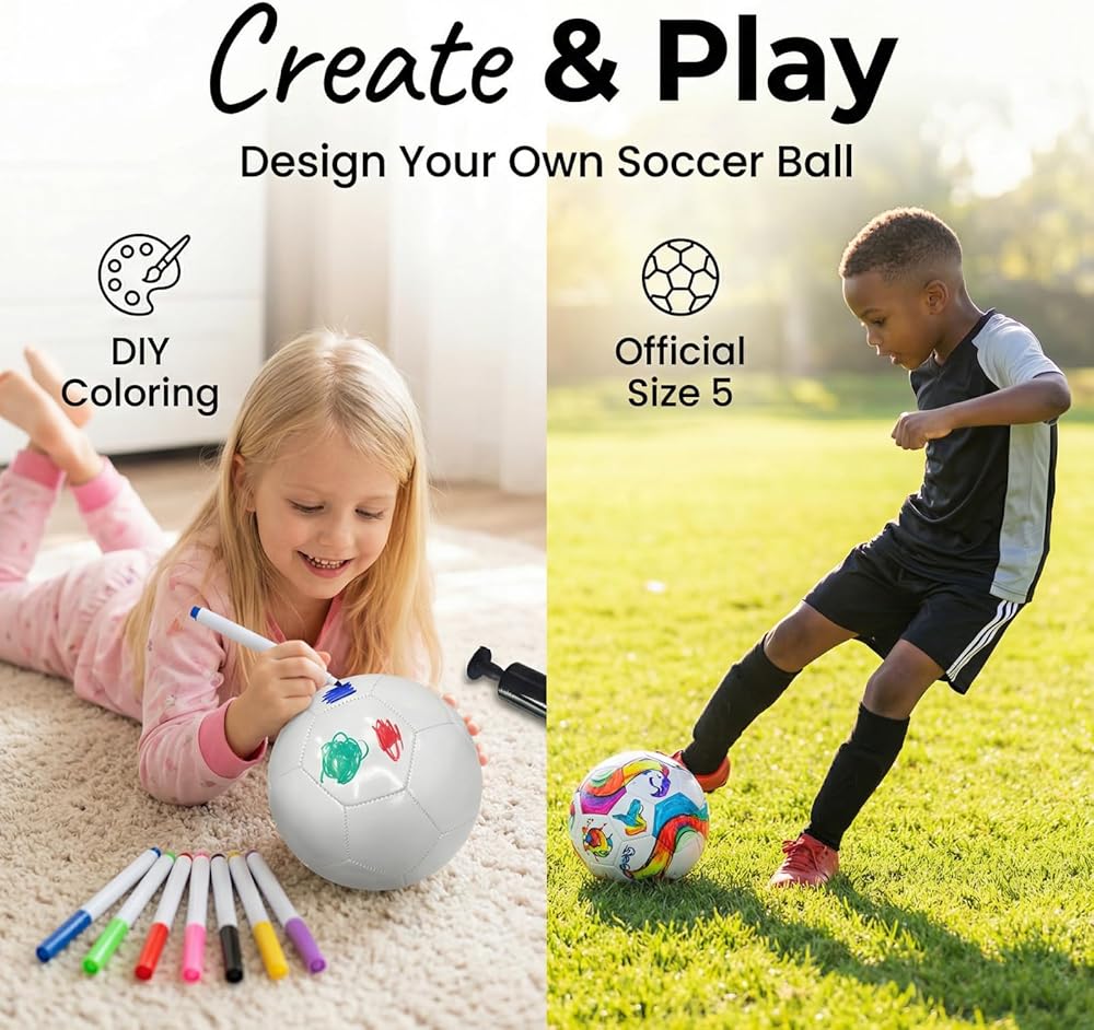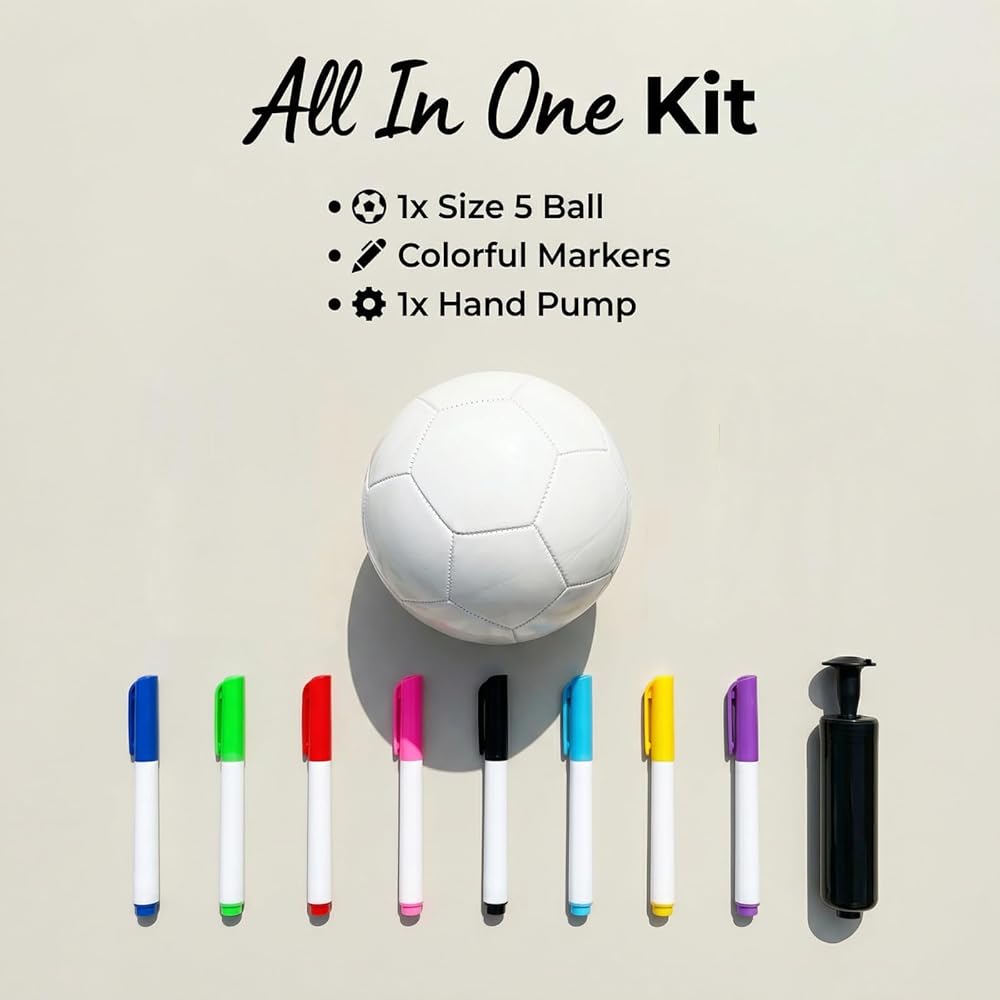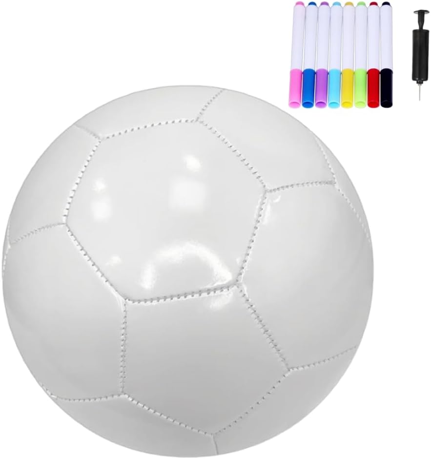 كرة قدم مقاس 5 لون نقي يمكنك صنعها بنفسك كهدية للأطفال مع 8 أقلام رسم ومضخة هواء