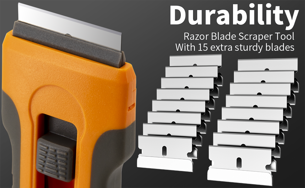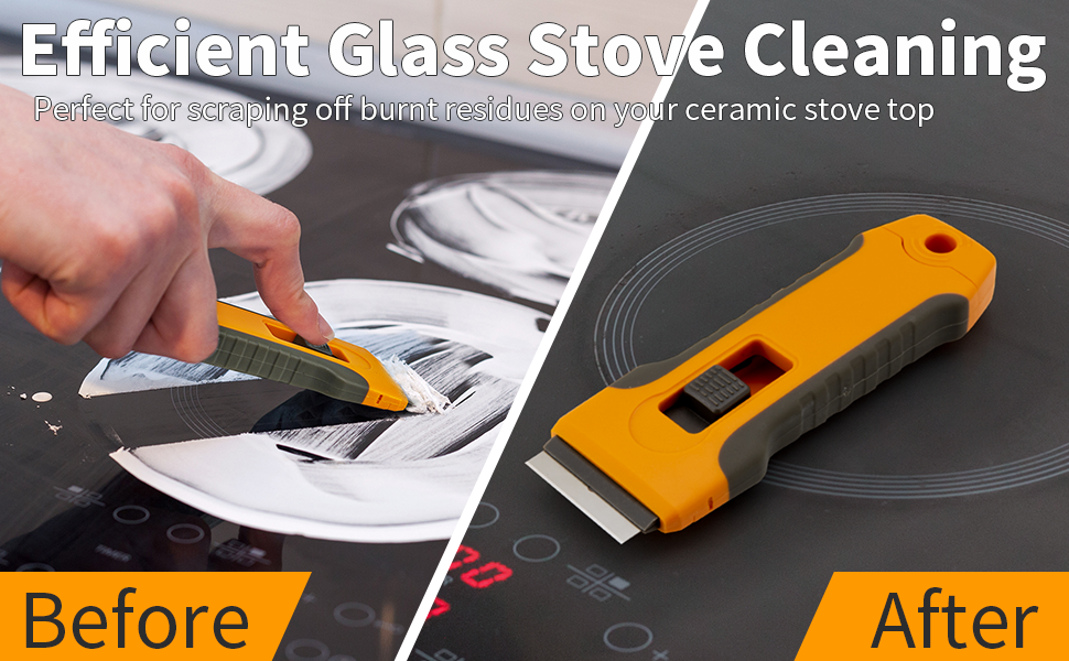 مثالية للاستخدام على مواقد الزجاج والسيراميك وأسطح الطهي، وهي رائعة لإزالة الطعام المحروق والمواد اللزجة، وكذلك الكشط في الحمام. كما أنه فعال لإزالة مجموعة متنوعة من المواد الأخرى، بما في ذلك طلاء النوافذ والحشوات والدهانات والملصقات وبقايا أفلام التلوين وورق الحائط والحدود حول المنزل