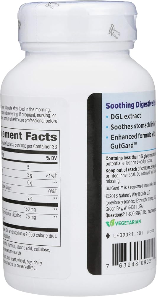 Enzymatic Therapy, DGL (Without Fructose), 100 Chewable Tablets. Pack of 1