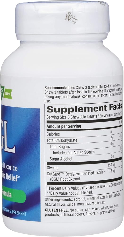 Chewable, NO sugar deglycyrrhizinated licorice (DGL) tablet