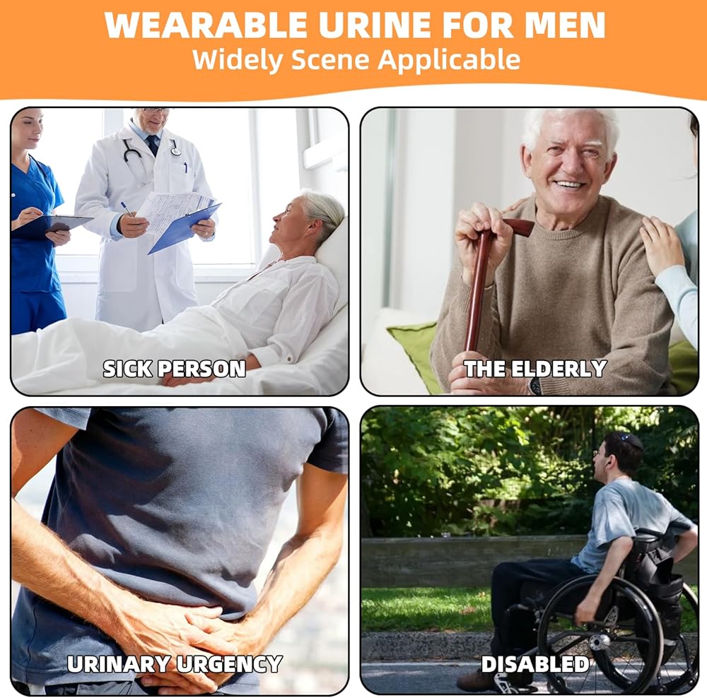 【Widely Applicable】This male urine collection system is suitable for elderly and the person who suffer bladder leakage or incontinence. The silicone urine collector for men is suitable for elderly and men who are sick, fractures, paralysis, urinary frequency, urinary urgency, urinary incontinence.Its portability makes wewearable urine for men convenient for both home and travel use, allowing for easy attachment and secure wear, It is also suitable for people in wheelchairs