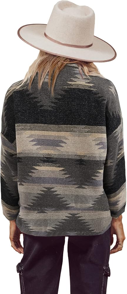 ✅ سترة أزتيك العصرية مصنوعة من نسيج ناعم وسميك مع مقاس كبير يشبه الصندوق ونمط أزتيك ملون محايد لإضافة لمسة من الذوق البوهيمي.