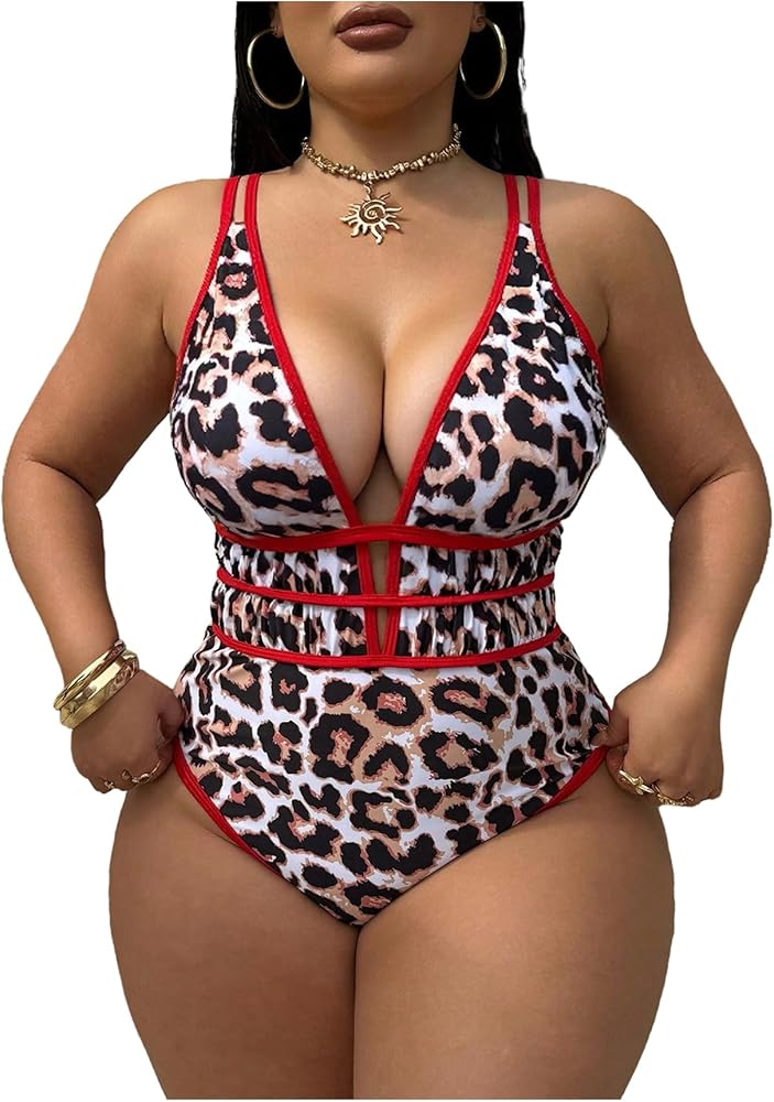بدلة سباحة نسائية من قطعة واحدة مقاس كبير من SHENHE للتحكم في البطن وطباعة الفهد