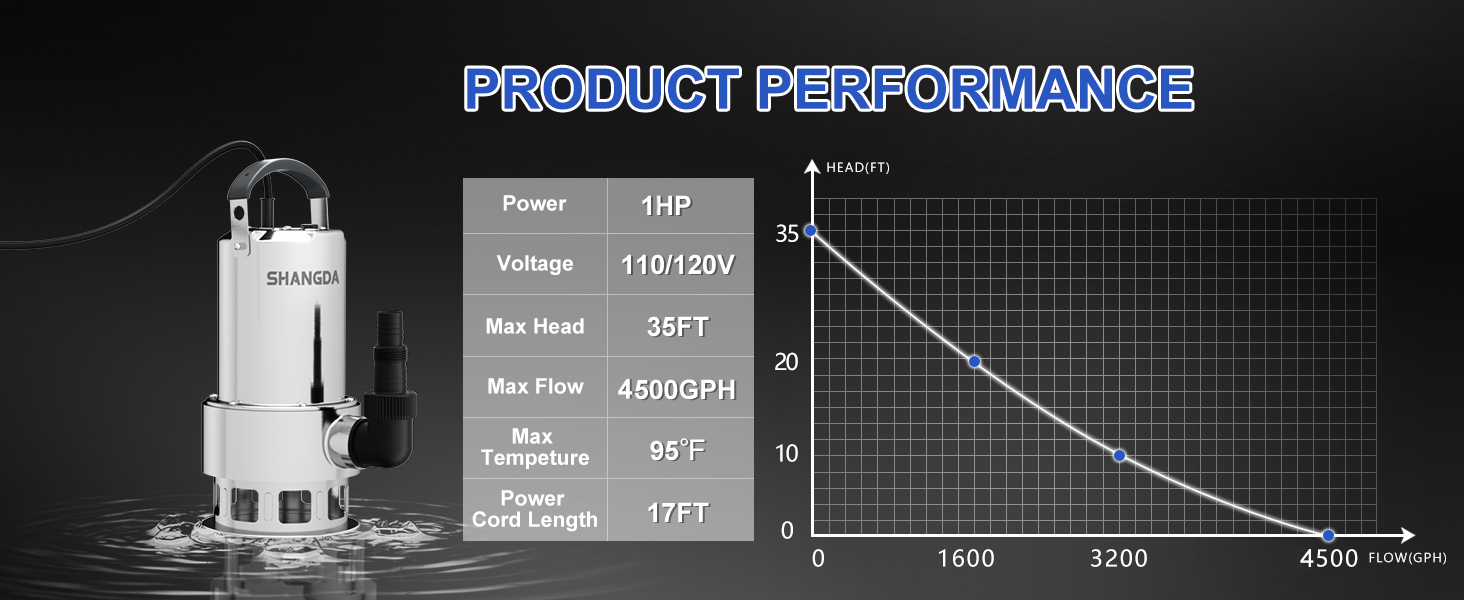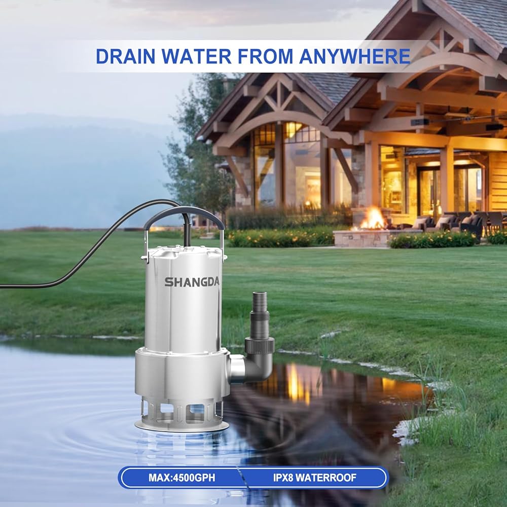 تصريف فعال: مضخة مستنقع مع محرك موفر للطاقة بقوة 1 حصان، تعمل على تحسين كفاءة المحرك وتقليل تكاليف الطاقة. تصريف المياه حتى 4500 جالون في الساعة على ارتفاع 5 أقدام، ورفع المياه حتى 35 قدمًا. يزيل الماء حتى 2 بوصة من السطح. جعل التصريف نسيمًا