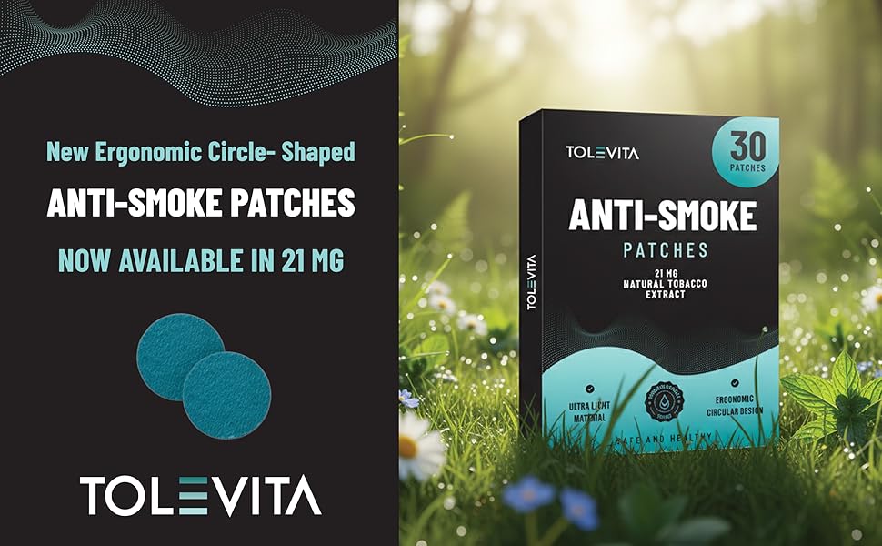رقعات عشبية مضادة للدخان من توليفيتا - على شكل دائرة 21 ملجم (أزرق مخضر)، أقلع عن التدخين وساعد في تقليل الرغبة الشديدة في التدخين | مساعدات عشبية للإقلاع عن التدخين من أجل نمط حياة أكثر صحة - 30 رقعة