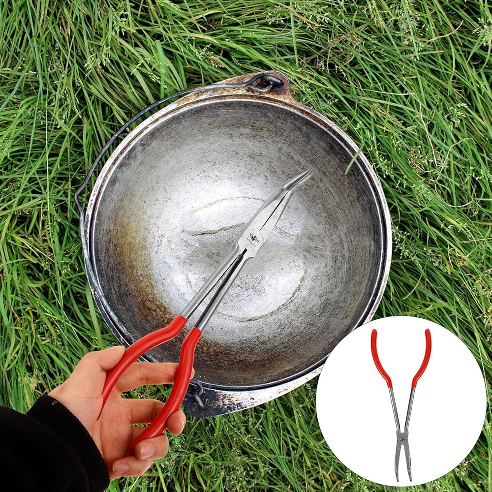 Solustre 11 بوصة مقبض أحمر ملقط بوتقة 90 درجة ذوبان المشبك كماشة لتكرير الذهب والفضة، أداة المشبك كوب بوتقة طويلة لاستخدام مختبر مسبك