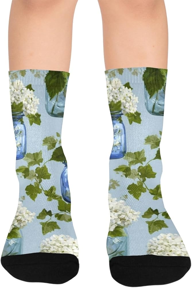 جوارب Hydrangea Jar باللون الأزرق الداكن للمشي لمسافات طويلة - جوارب شتوية حرارية سميكة دافئة للأولاد والبنات للمدرسة، والارتداء اليومي والأنشطة الخارجية