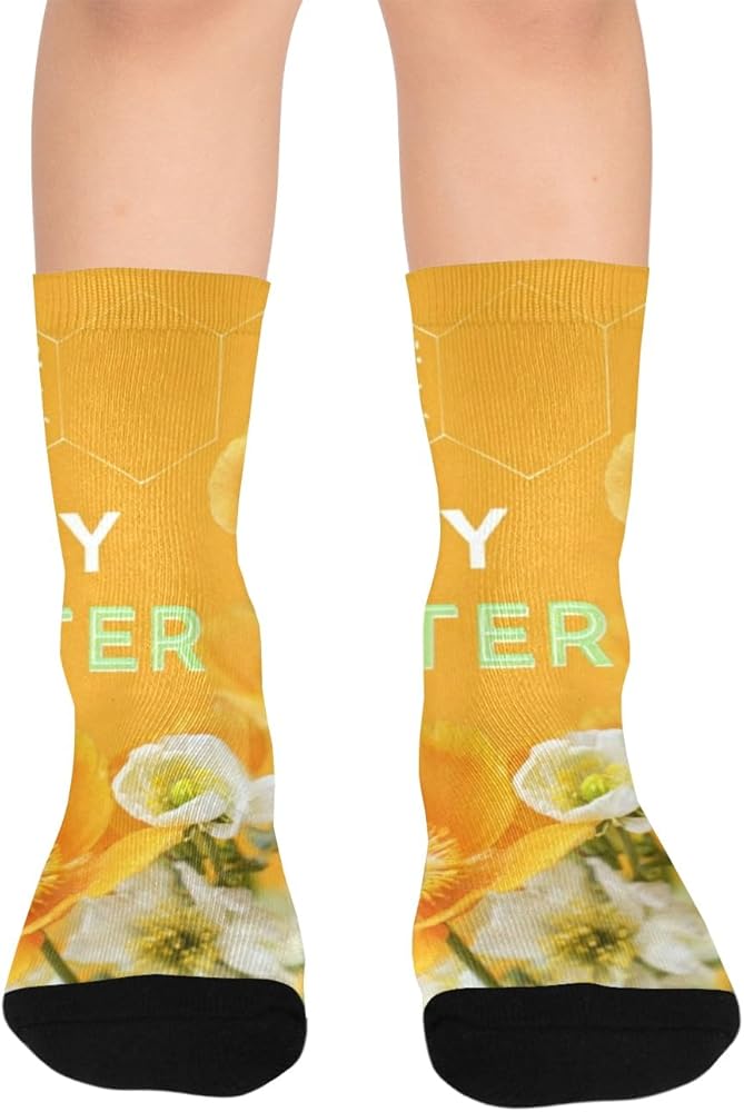جوارب المشي لمسافات طويلة باللون الأصفر على شكل بيضة عيد الفصح من الخشخاش - جوارب شتوية حرارية سميكة دافئة للأولاد والبنات للمدرسة، والارتداء اليومي والأنشطة الخارجية