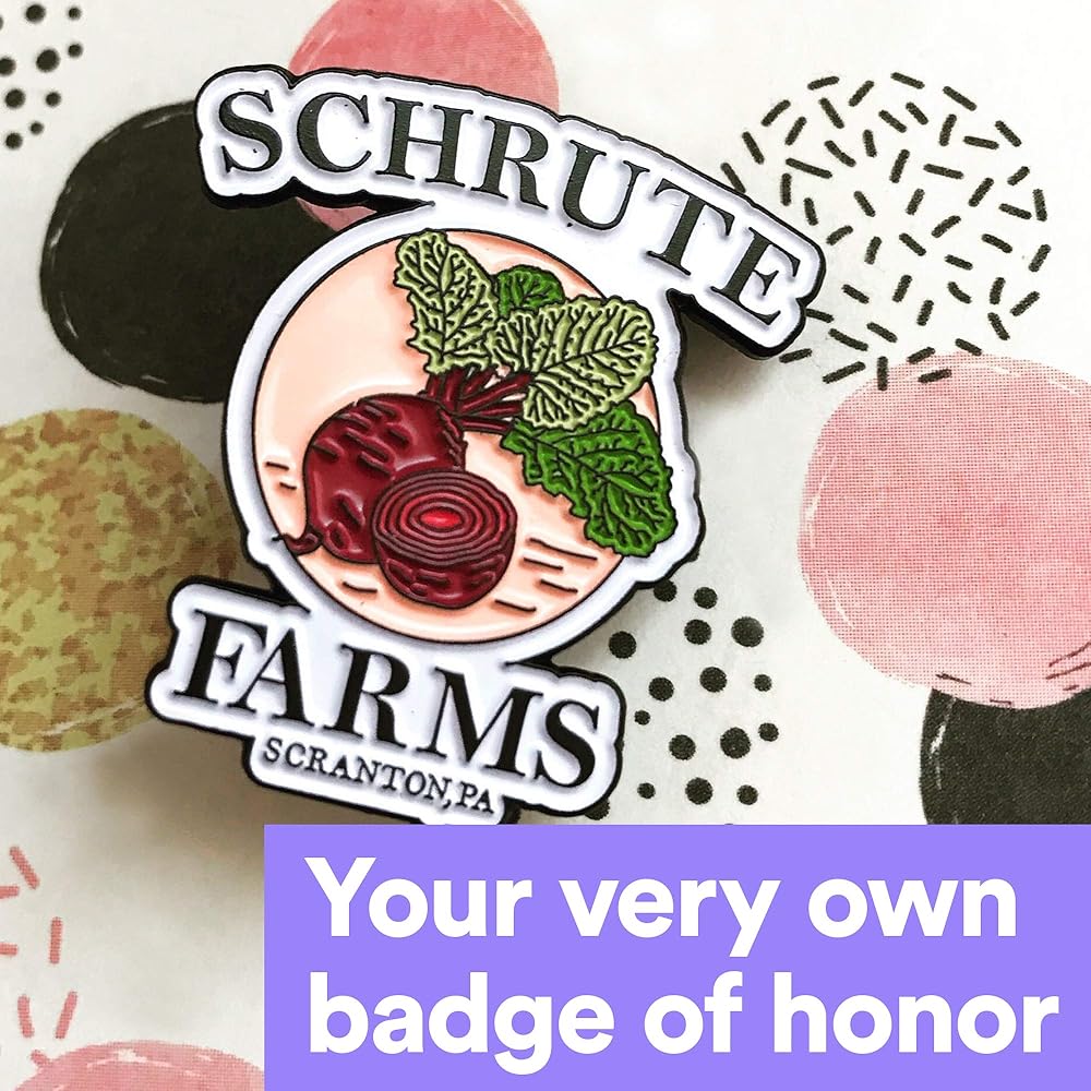 دبوس التلبيب المينا 3.17 سم. خنافس مزارع شروت - مستوحى من المكتب. كانتون، بنسلفانيا. يمثل فكرة هدية رائعة. فكر في ما وراء تي شيرت ومجموعات دي في دي معلبة