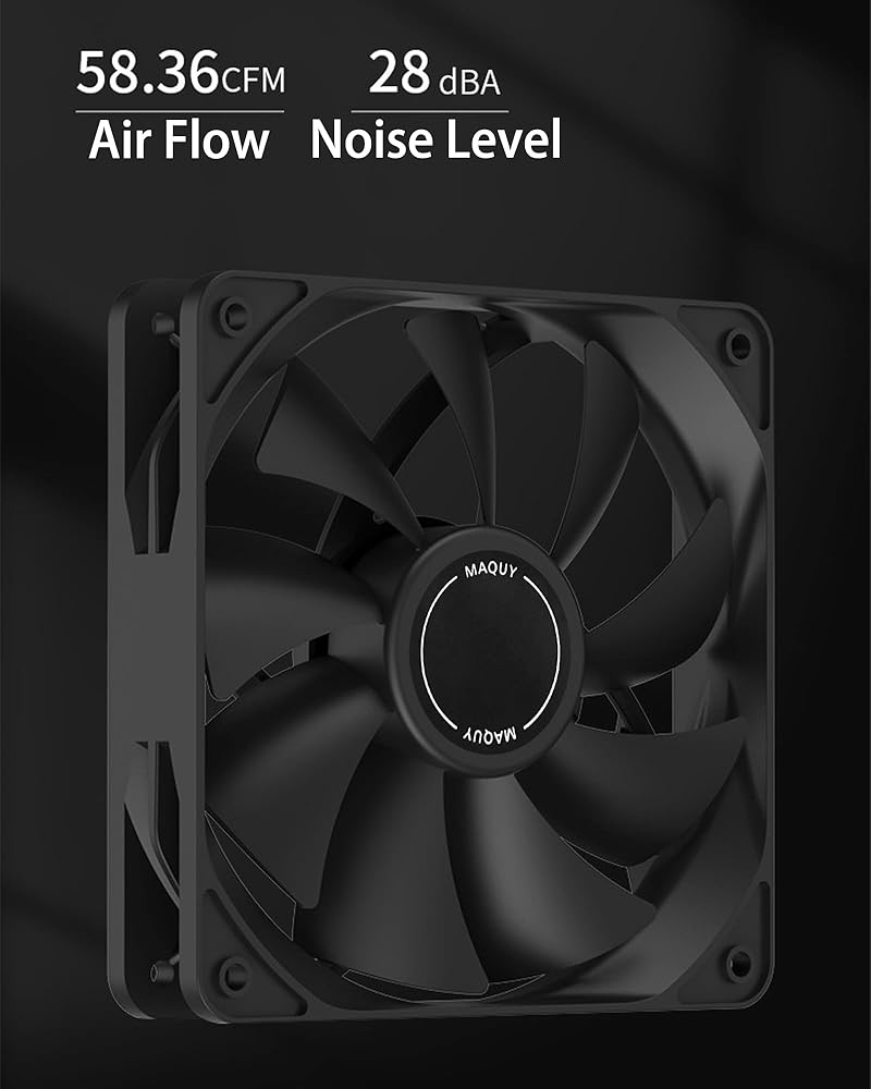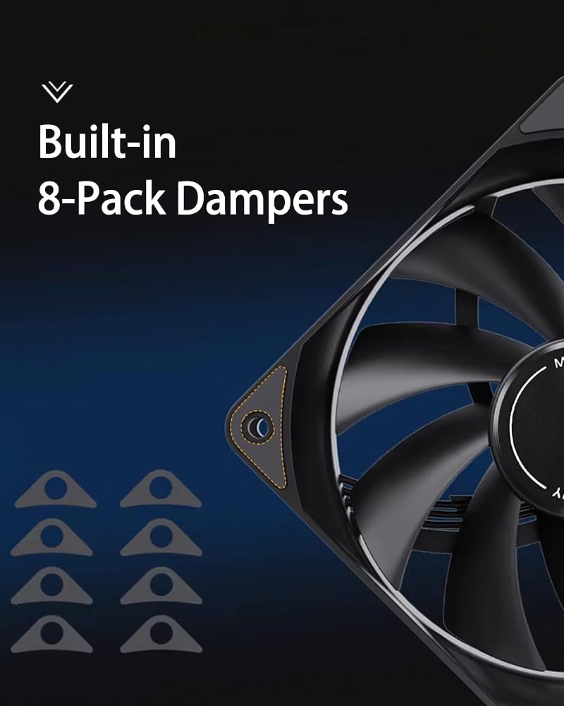 【Anti-Vibration Technology】Say goodbye to annoying hums and rattles. Our computer case fans are built with premium Hydraulic Bearings for smooth, silent rotation. Each fan features 8 soft silicone dampers that absorb vibrations at high speeds, keeping the maximum noise level to just 28dBA—perfect for a quiet office or a noise-sensitive home theater PC (HTPC).