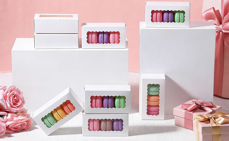 【متعددة الأغراض】صناديق هدايا الماكارون البيضاء الصغيرة تناسب الماكارون وكعكة الشوكولاتة والخامات المغطاة بالشوكولاتة والبسكويت الصغيرة والحلويات لحفلات الزفاف وحفلات استقبال الأطفال وأعياد الميلاد والذكرى السنوية والعطلات وشكرًا على الهدايا وغيرها من المناسبات.