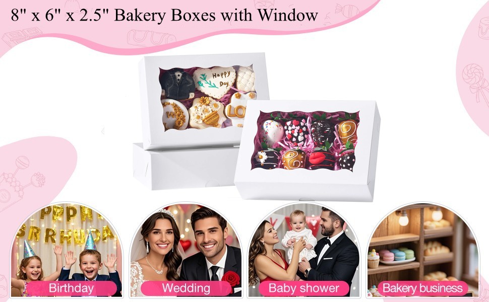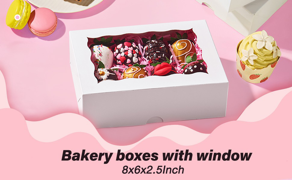 【مجموعة قيمة فائقة】8 قطع من صناديق الخبز الرائعة مع صناديق بسكويت نافذة مع نافذة. حجم كل صندوق هو 8 × 6 × 2.5 بوصة كمية كافية لتلبية احتياجاتك المختلفة لتقديم الهدايا ومشاركتها.