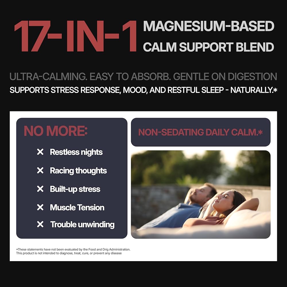 دعم استرخاء العضلات والجهاز العصبي: - يتميز بثلاثة أشكال متميزة من المغنيسيوم، والبيسجليسينات، والسيترات، والمالات، بالإضافة إلى النباتات المهدئة، تدعم هذه العلكة استرخاء العضلات والراحة الجسدية وتوازن الجهاز العصبي. مثالي لأيام العمل الطويلة أو أنماط الحياة النشطة أو التوتر اليومي.