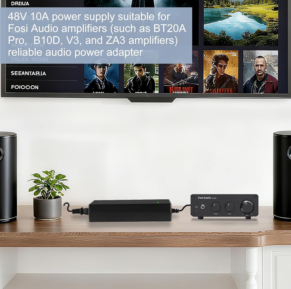 Power up your audio experience with this reliable 48V DC power supply adapter designed specifically forHome Audio TPA3255 Stereo Class D Amplifier models. This 48V 10A power adapter ensures consistent, stable power delivery to compatible amplifier models including A07, A07 MAX, A08 PRO, and A70. The adapter serves as a crucial component for your audio setup, providing the necessary voltage and current requirements for optimal amplifier performance. Whether you're replacing an existing power supply or setting up a new system, this adapter offers seamless compatibility with supported TPA3255-based amplifiers. Its dedicated 48V output at 10 amperes makes it an ideal choice for powering your high-performance audio equipment. The adapter helps maintain the sound quality and reliability you expect from your amplifier system, ensuring consistent power delivery during operation.