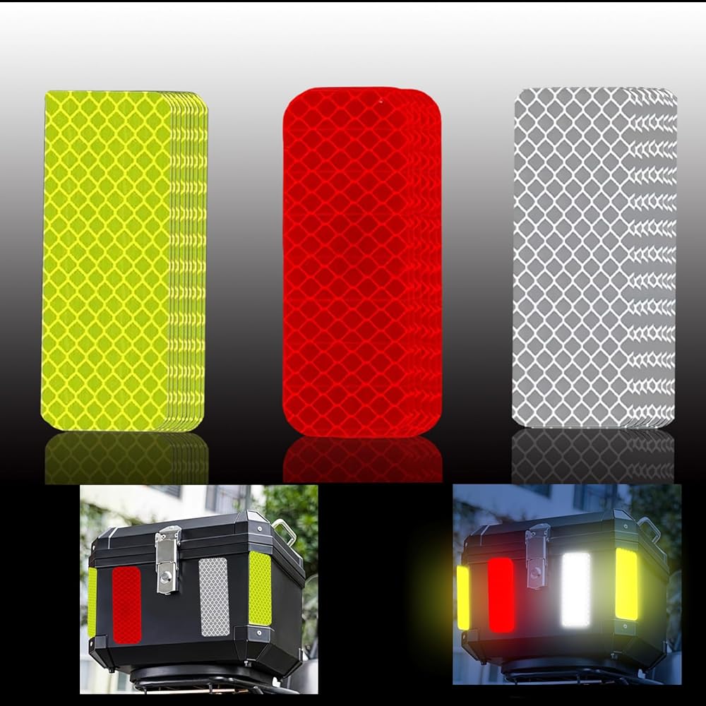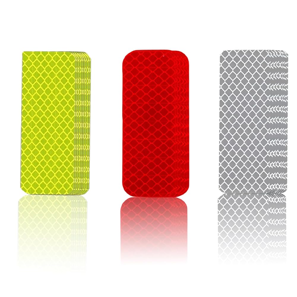 90 Sheets of night reflective tape, 3 colors - yellow, silver, red. Each color has 30 reflective decals