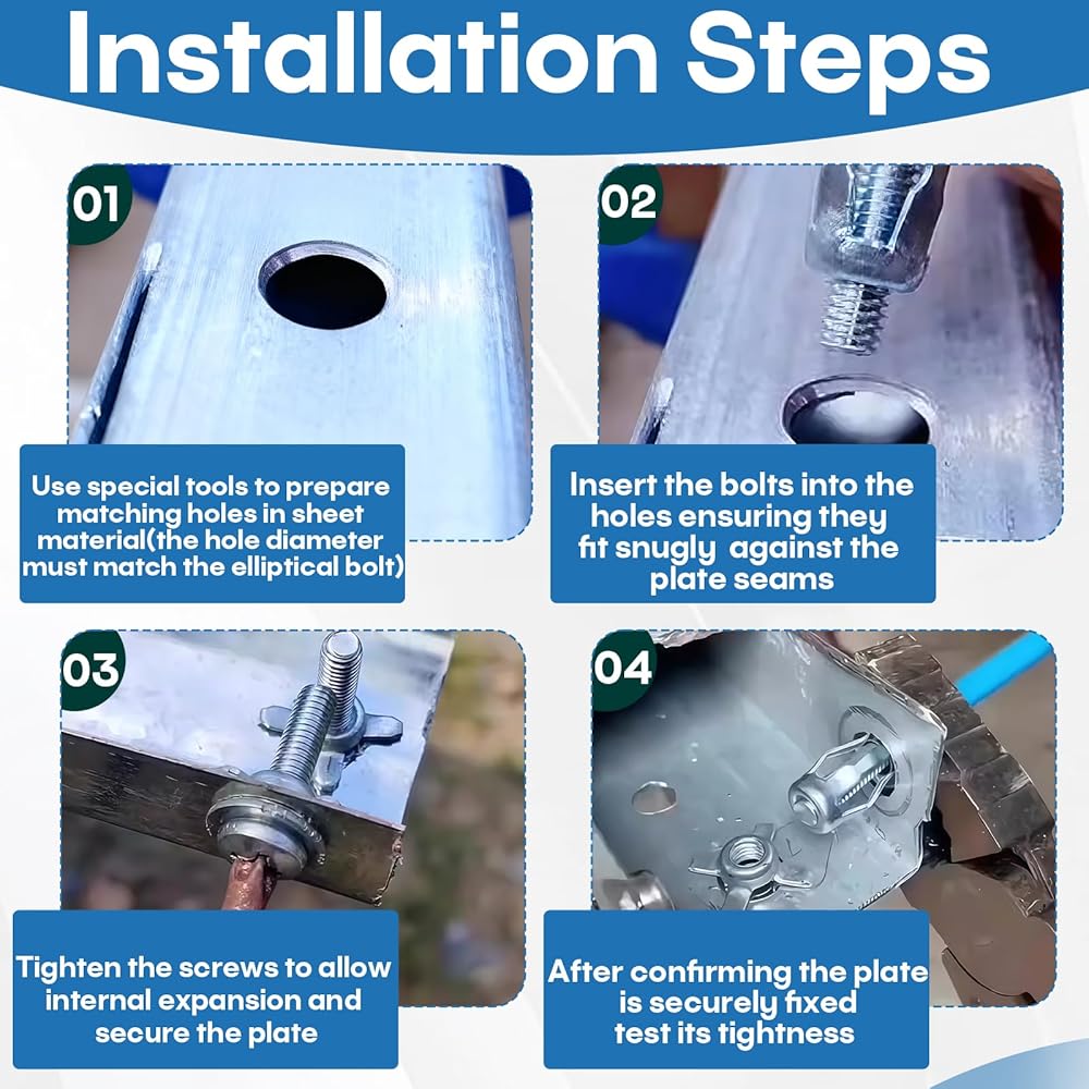 تركيب متوافق مع الأدوات: مصممة لكل من الأدوات اليدوية والهوائية، تتضمن عملية التثبيت تثبيت صامولة البتلة في الفتحة المثقوبة مسبقًا لمنع الدوران، ثم ربط المسمار المطابق. استخدم مفتاح ربط أو كماشة لتشديد التجميع؛ عندما يدور المسمار، يتمدد الصمولة ويثبت بشكل آمن في مكانه. تجنب الإفراط في تشديد لمنع تجريد الخيط