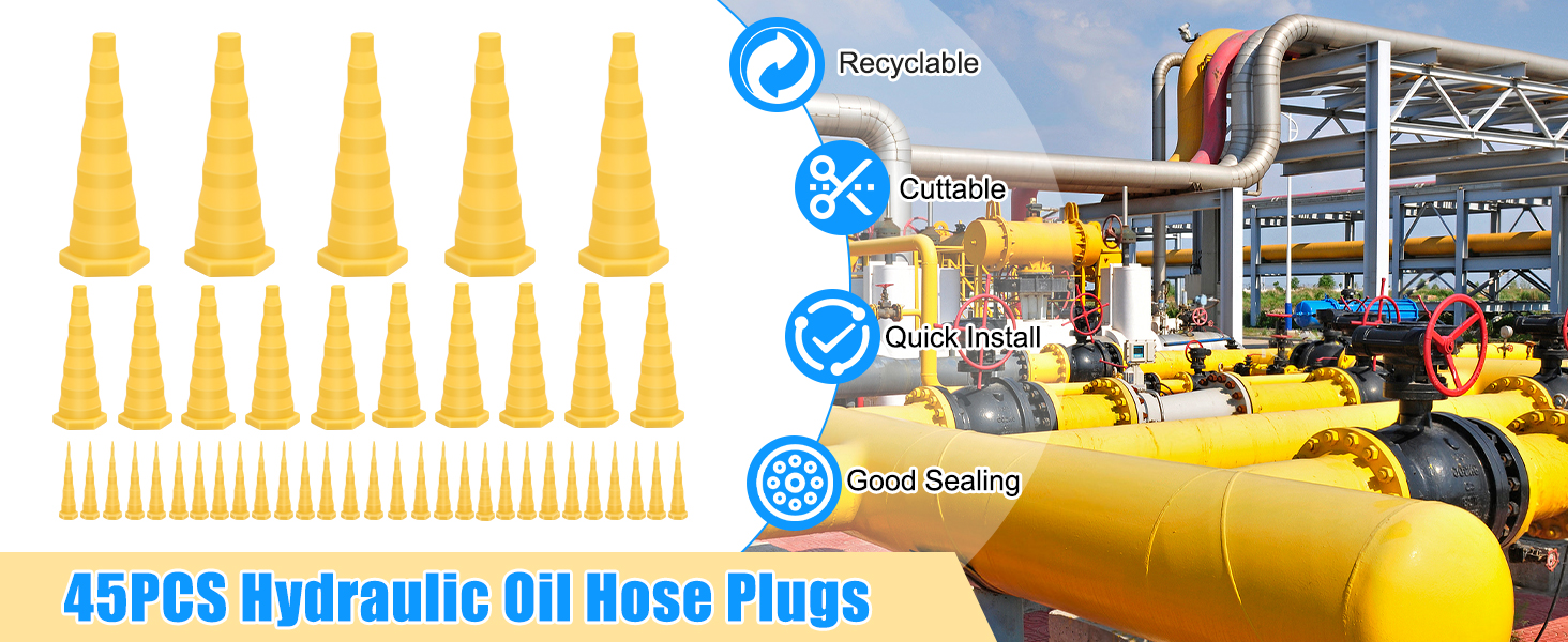 سهلة التركيب والإزالة: سدادات خرطوم المطاط الصناعي للتركيب سهلة، فقط تحتاج إلى ضغطة بسيطة ولفها لتأمين إغلاق محكم مانع للتسرب. تتميز بعض المقابس الصغيرة بفتحة مريحة لسهولة الإزالة.