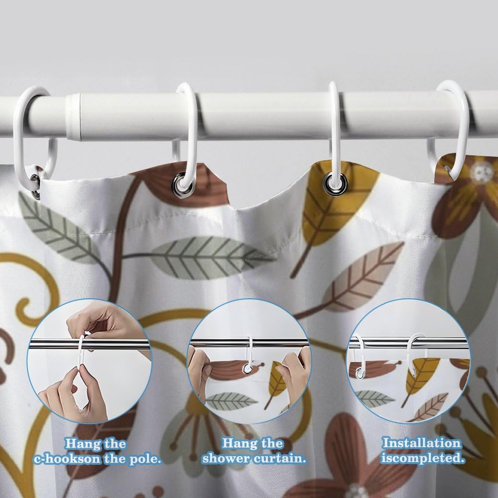 • 【East To Install】Equipped with 12 rust-proof metal grommets and thickened C-shaped curtain hooks, this cottage core curtains features grommet holes that fit all types of rings or hooks for easy replacement and cleaning. The metal grommets prevent hole tearing and extend the curtain's service life. Installation is quick and hassle-free—simply hang the grommets onto your shower rod, making farmhouse shower curtains for bathroom suitable for various bathroom hanging needs.