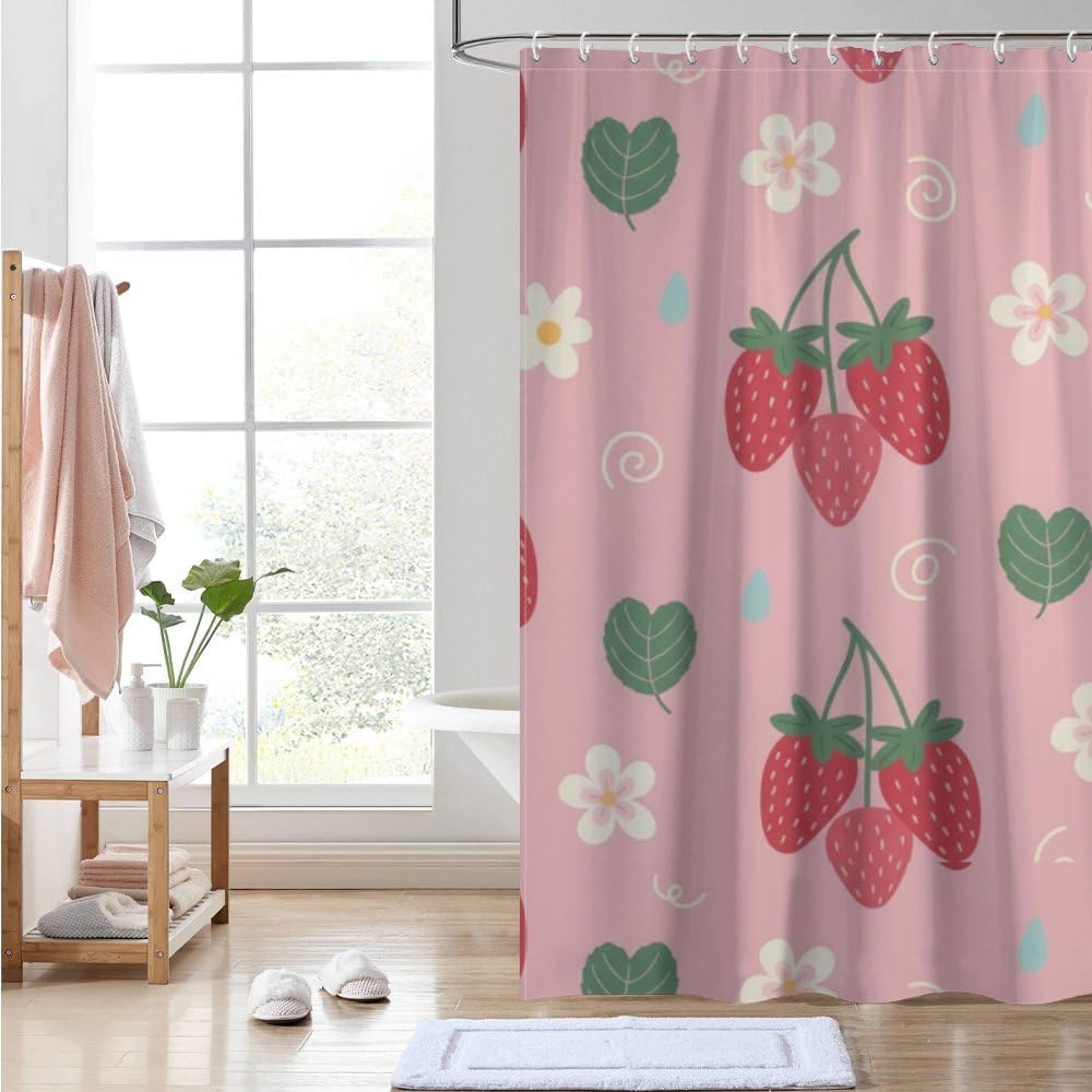 أنماط أوراق الأزهار لطيف ستارة دش مع السنانير، الصيف ستارة دش كوخ مقاوم للماء، النسيج قابل للغسل عطلة ستائر المرحاض للحمام ديكور الحمام الحديث 48x72 في