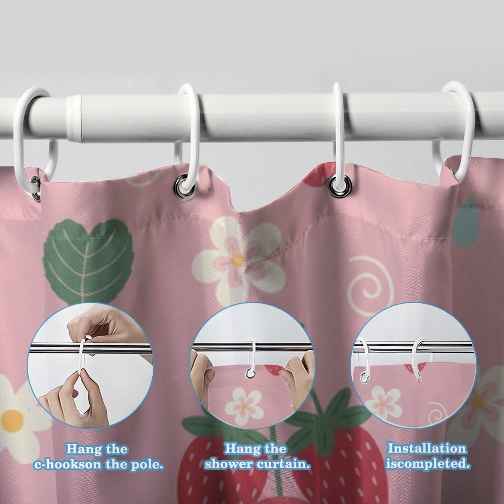 • 【East To Install】Equipped with 12 rust-proof metal grommets and thickened C-shaped curtain hooks, this cottage core curtains features grommet holes that fit all types of rings or hooks for easy replacement and cleaning. The metal grommets prevent hole tearing and extend the curtain's service life. Installation is quick and hassle-free—simply hang the grommets onto your shower rod, making farmhouse shower curtains for bathroom suitable for various bathroom hanging needs.