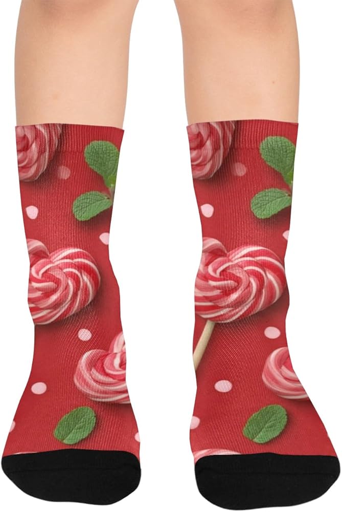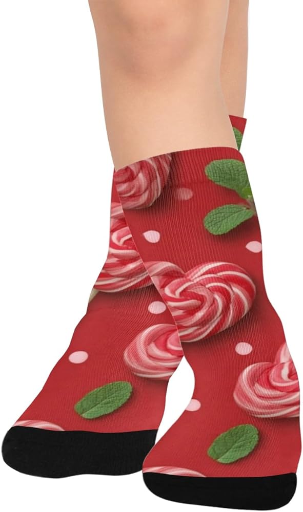 جوارب المشي لمسافات طويلة على شكل قلب مصاصة بالنعناع - جوارب شتوية حرارية سميكة دافئة للأولاد والبنات للمدرسة، والارتداء اليومي والأنشطة الخارجية