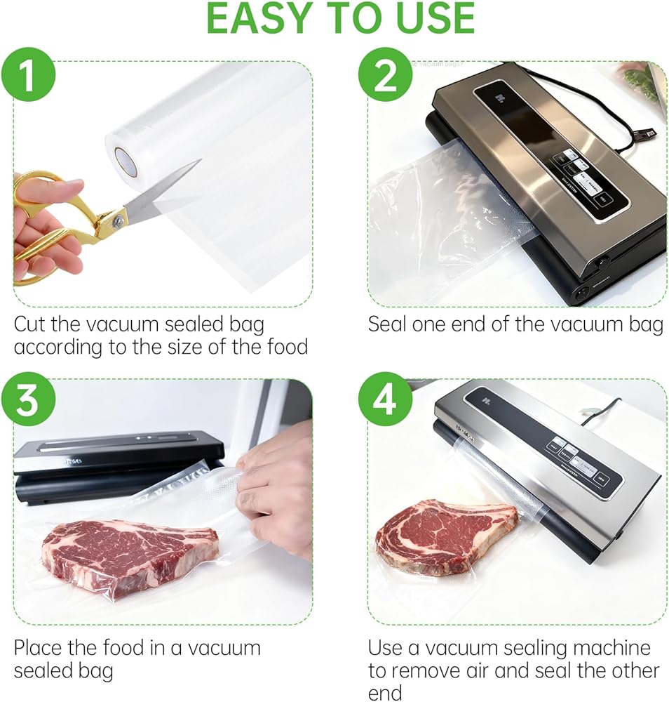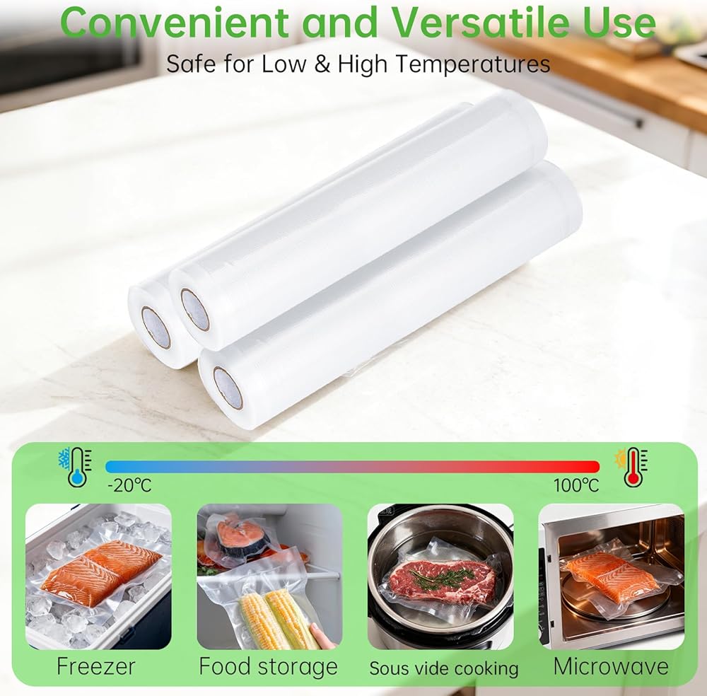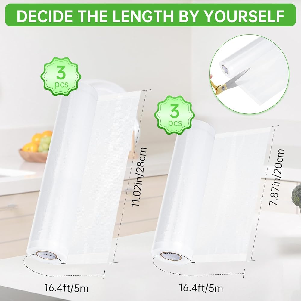 Perfect Compatibility:These vacuum sealer bags are perfectly compatible with Mesliese.Comes in 3 rolls of 7.87"*16.4 ft and 3 rolls of 11.02"*16.4 ft