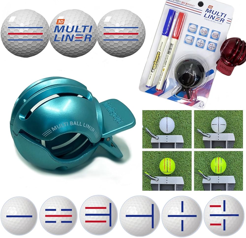 بطانة كرة الجولف الممتازة، علامة كرة الجولف، رسم خطوط مختلفة 330 درجة دون الدوران، مجموعة محاذاة كرة الجولف لوضعها، إنشاء 7-8 خطوط DIY، يتضمن قلم مونامي