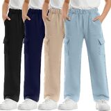 Detail Design: featuring multiple front patch cargo pockets for ample storage and a classic straight leg, relaxed fit, these boy's cargo pants combine utility with modern style; The elastic waistband ensures easy wear and lasting comfort for growing boys